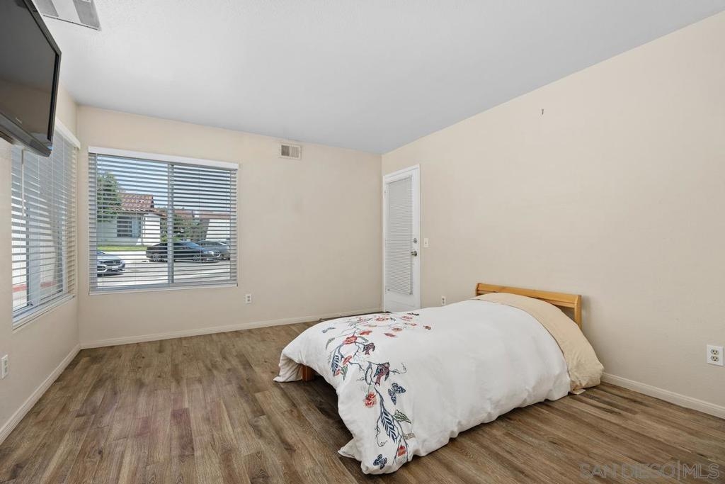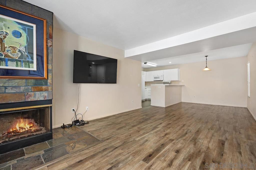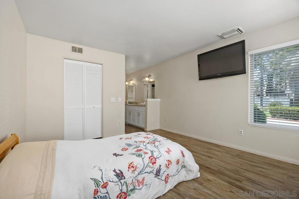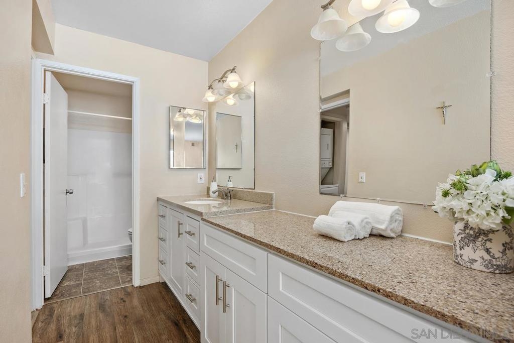 Excellent single level corner unit on first floor at Adobe Hills! Beautifully maintained! DUAL primary bedrooms w/tastefully updated baths! NEWER dual pane windows & sliding glass door! Lovely wood laminate flooring. White kitchen features plentiful cabinetry & NEWER: range/oven, microwave, & dishwasher. Living room w/chic slate fireplace & direct access to your serene & private patio. Stacked washer/dryer in unit. A/C! TWO assigned parking spaces (1 covered space & 1 uncovered near patio). Complex amenities include: Large pool & spa, and fantastic clubhouse with full kitchen, perfect for entertaining! Easy access to shopping centers, restaurants, & HWY 15!