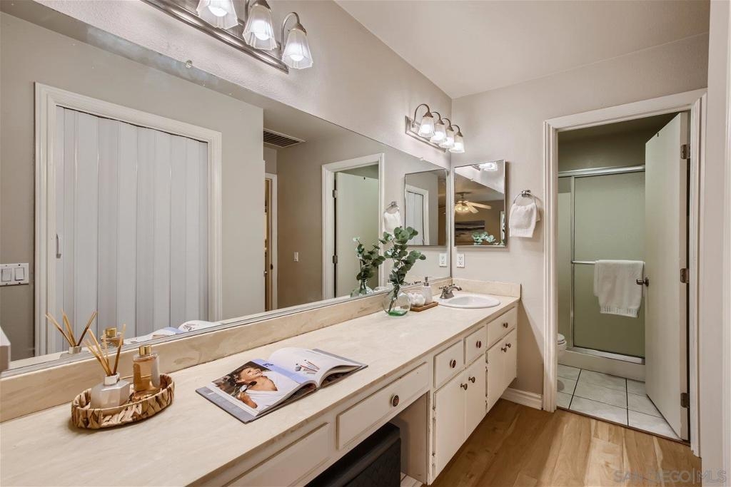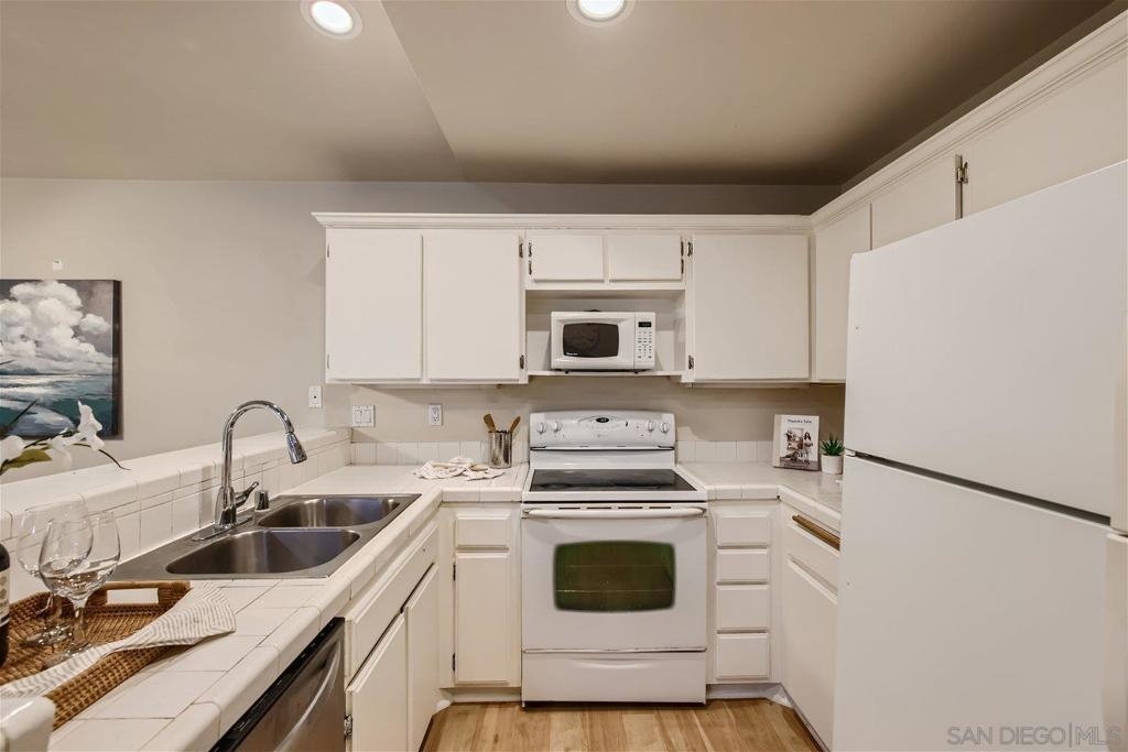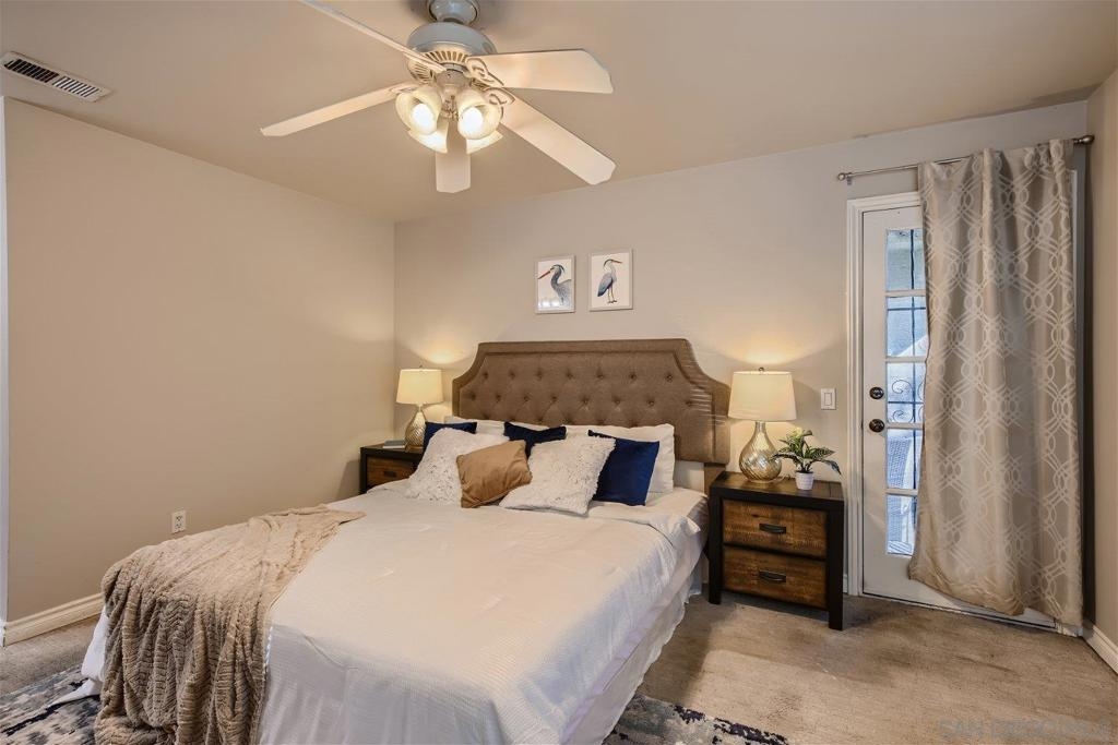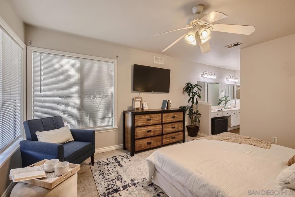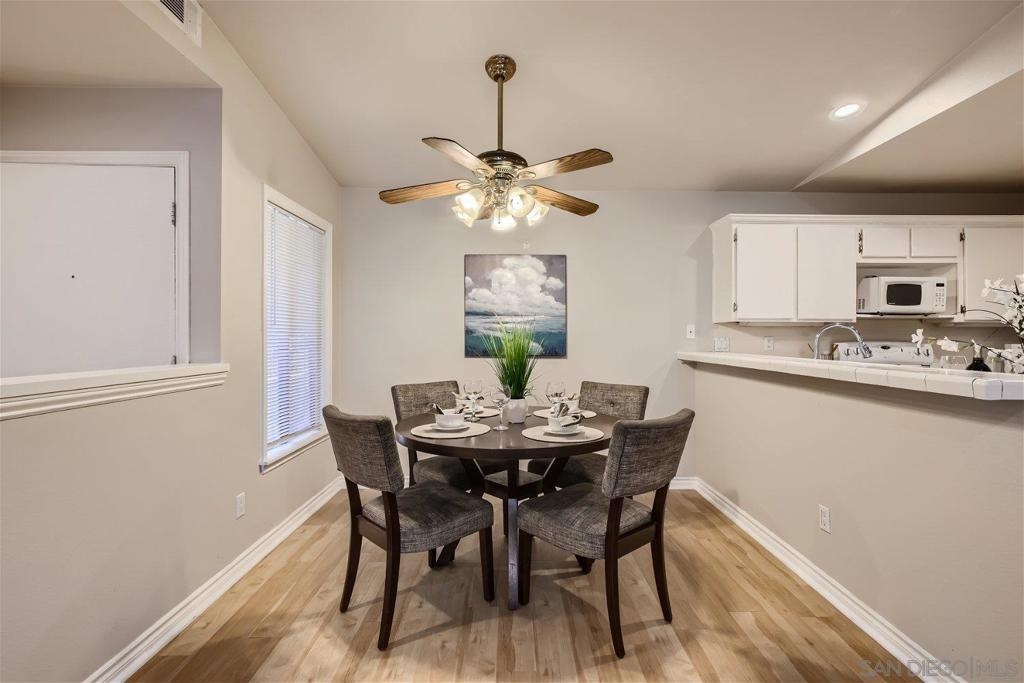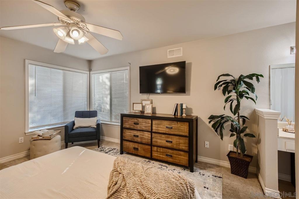 This single level corner unit features two en-suite bedrooms separated by the family room/kitchen combo, making it a versatile space for your needs.Enjoy the convenience of having no upstairs neighbors. The fireplace has been updated with designer encasing and molding. The unit has a patio for outdoor entertaining and a rear door for convenient grocery unloading. Located near Trader Joe's, Major Market, and Restaurants. This unit offers a comfortable and practical living experience in a convenient location.