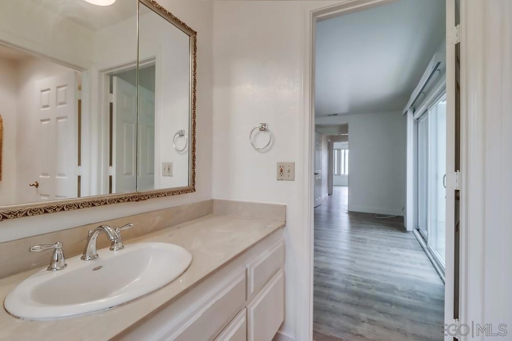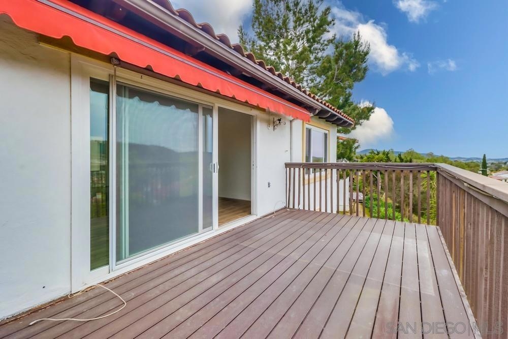Indulge in serenity and calmness in this delightful Mediterranean-inspired abode. The spacious living room boasts lofty vaulted ceiling and open floor plan. Take in stunning vistas of the mountains and refreshing coastal winds from the balcony. Upstairs, you'll find two generously sized bedrooms and two full bathrooms, while a bonus room and full bath downstairs offer their own private entrance. This single-family home shares only one attached neighbor. Recent upgrades include new flooring, fresh paint, new windows, and tiled showers in both bathrooms, one of which features a luxurious step-in shower. Enjoy private community amenities at your own Buena Ventura Club - pool, spa, tennis courts. Property is located minutes away from both the 15 and 78 freeways, Palomar Hospital, Costco, Palomar College and CSUSM as well as being about 30 minutes away from beaches and 45 minutes from downtown San Diego.