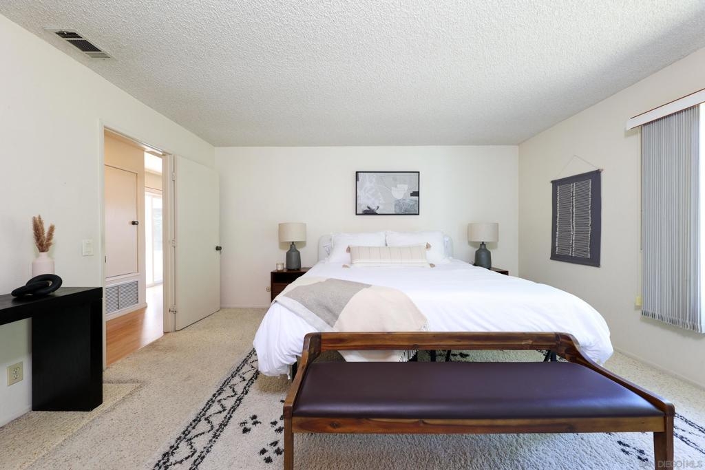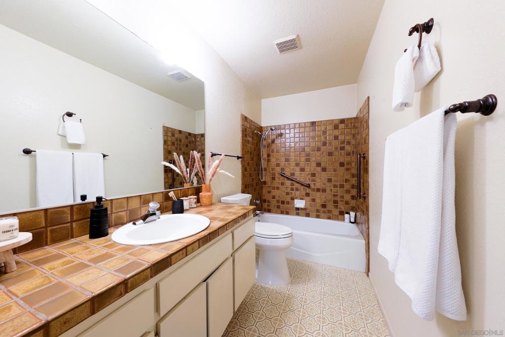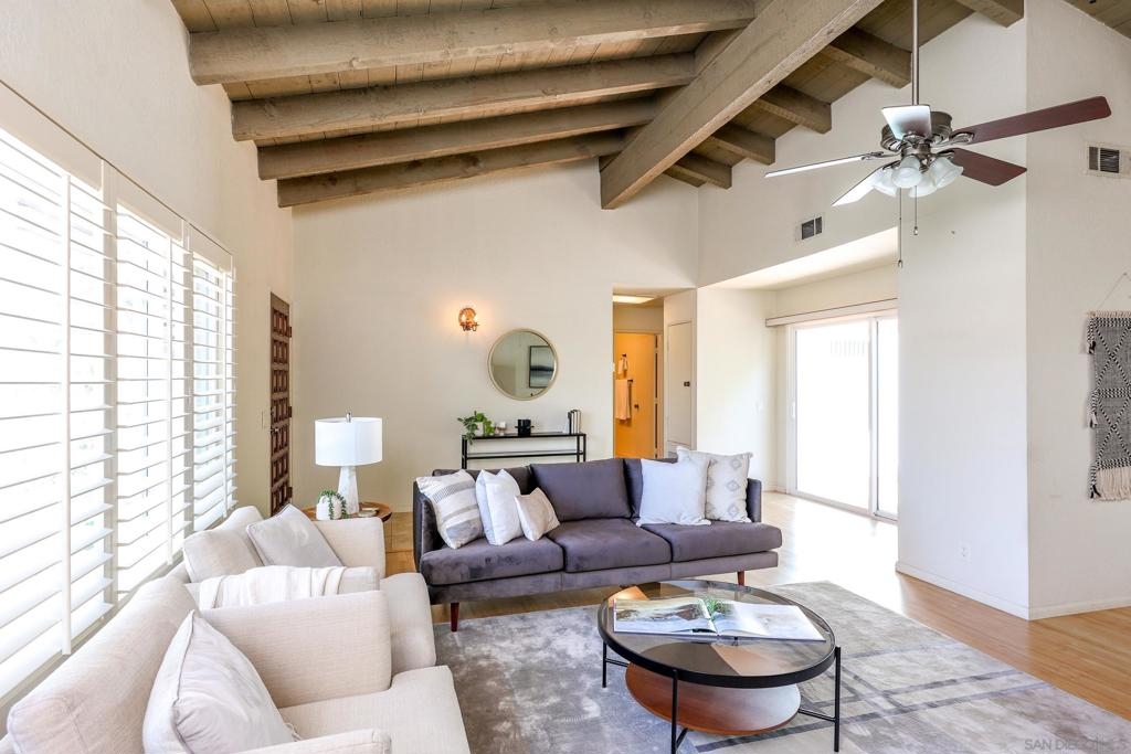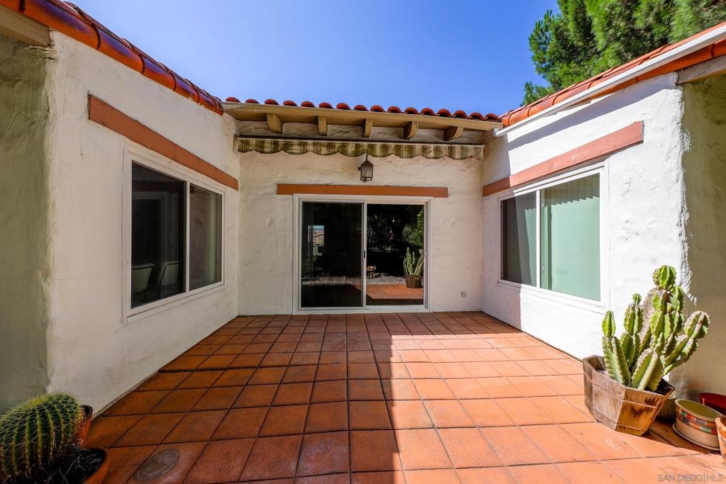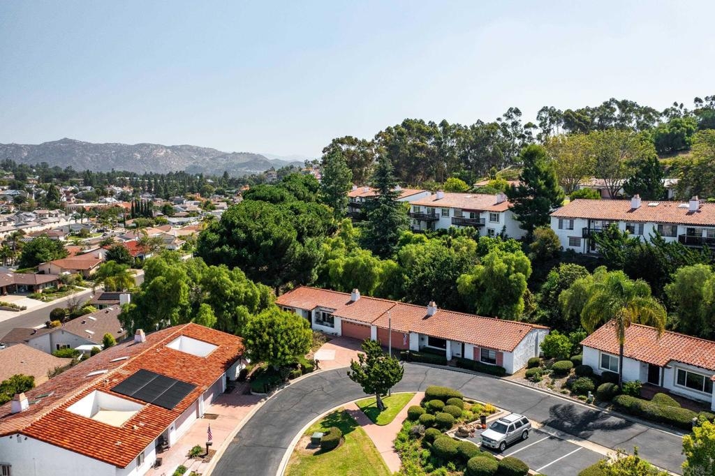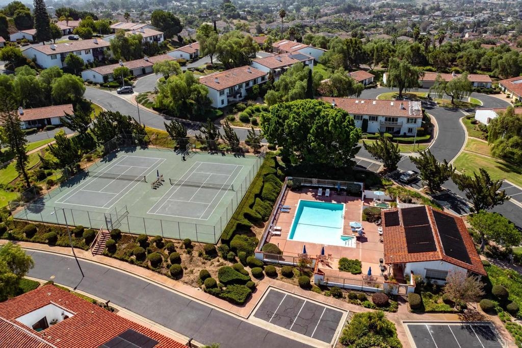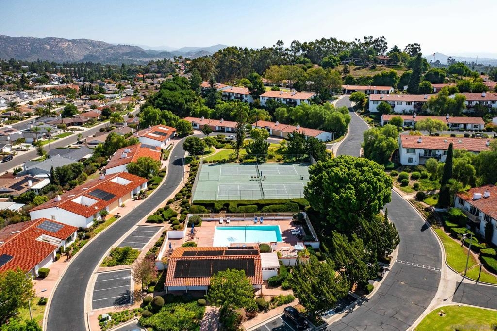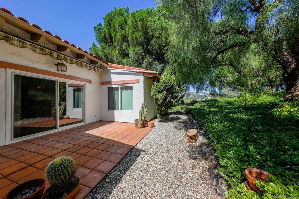 Nestled in a private corner of the Beuna Ventura community of Escondido, this single level 1,266sqft, 2 bed, 2 bath, 2 car garage, end unit twinhome offers the perfect blend of classic Spanish style and modern amenities. Relax in your secluded tree covered backyard. Entertain in the open floor plan, vaulted exposed beam living room with fireplace. Ample storage with a full wall of cabinets in the kitchen, walk-in bedroom closets. Stay cool on those hot summer days with central AC. Community has two tennis courts, pool, hot tub, tree covered grassy areas to walk your dog and so much more. Spanish-style end unit townhome located in the desirable Buena Ventura community of Escondido. This single-level property has 1,266sqft of living space, with 2 bedrooms and 2 bathrooms. The only shared wall is the garage, so this home feels like a detached property. The kitchen has a full pantry wall with ample storage, and the spacious living room features an open beam ceiling and an adobe style fireplace. The living room has ample natural light. The master bedroom has a walk-in closet and private bathroom, and the second bedroom has a large closet and overlooks the patio. The backyard is private and perfect for entertaining guests or relaxing on a summer day. The townhome is located in a quiet corner of the community, surrounded by mature trees and rolling hills. The community has a tennis court and pool, close to schools, shopping, and restaurants, making it a convenient place to live.