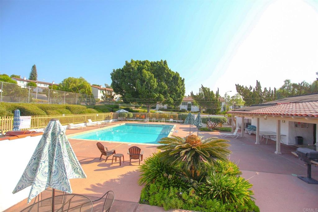 Beautifully remodeled duplex in highly-desireable serene Buena Ventura community. Very quiet neighborhood and tucked away in a cul-de-sac with mountain views in a park-like setting. Beautiful views from the master bedroom and great room which both feature elevated decks. The private side yard and patio are private with orange and pear trees. The house has just been remodeled with new flooring, paint, kitchen appliances, fireplace facade and more! Open concept and spacious, the great room, kitchen and breakfast nook feature open beam vaulted ceilings. This unit is the largest model available and includes a large (approx. 700sf) bonus suite complete with private entrance and bathroom which is not included in square footage. Very well maintained grounds include resort-like amenities including community swimming pool, jacuzzi and rec room and tennis court. Will be showing to agents+ clients by appointment Sunday Oct 11th @ 1pm-3pm and Wednesday Oct 14th 4-6pm.