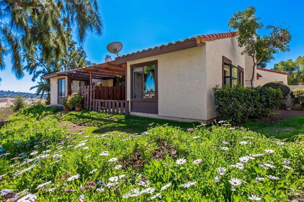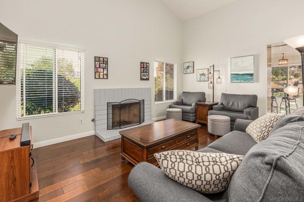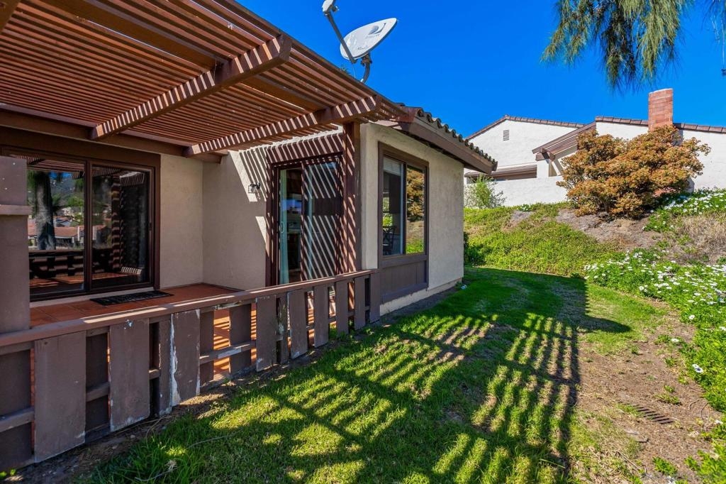 Fantastic location with views in beautiful Cameowood. Move in ready charmer is perfectly situated to take full advantage of the great views and cool afternoon breeze. Gorgeous wood floors, cozy fireplace in the living room, large kitchen, private courtyard in front and great patio in the back for great outdoor living space. Dual pane vinyl windows throughout, whole house fan excellent for quickly cooling off home, single story with only one common wall lives like a detached home. 2 car garage with driveway space for two cars also. San Marcos school district, close to all, easy freeway access, nearby shopping, dining, schools, & just steps away to walking trails throughout the community. HOA includes a community pool, exterior building maintenance, roof maintenance, landscaping and common area maintenance.
