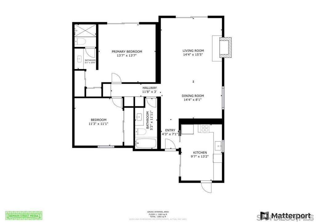 3 beds, 2 baths, 1,300 sq.ft.