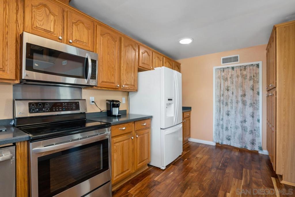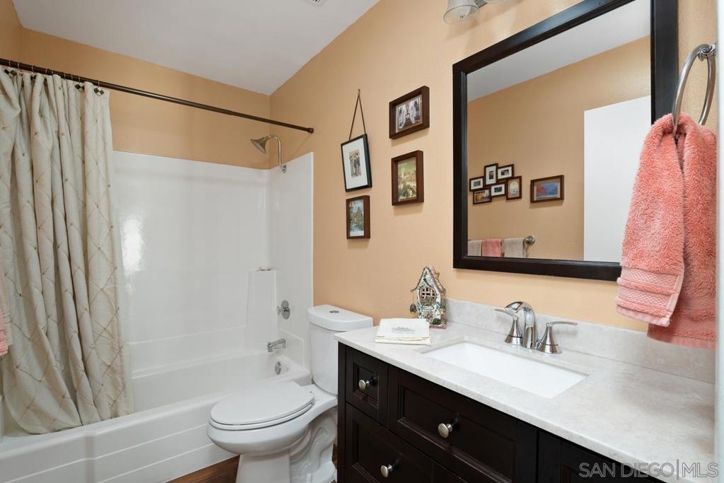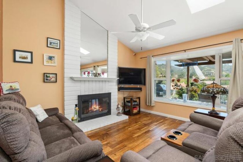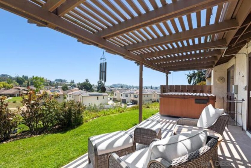 Don't miss this beautifully updated 3 bedroom, 2 bath twin home in the desirable Cameowood community! Features gorgeous engineered hardwood floors, Double pane windows throughout, open concept kitchen, fireplace and vaulted ceiling in living room. Tons of natural light throughout. Private, covered back patio to relax and enjoy the view. 2 car garage and ample guest parking across the street. Additional private patio off master and private courtyard at entrance. San Marcos school district. Community pool with spa and barbecue area is walking distance. Buyer & Agent to verify all MLS information prior to inspection contingency removal including measurements, square feet, permits, Gas/Elec at Laundry, school district, water authority and parking. Security surveillance cameras may be in use.
