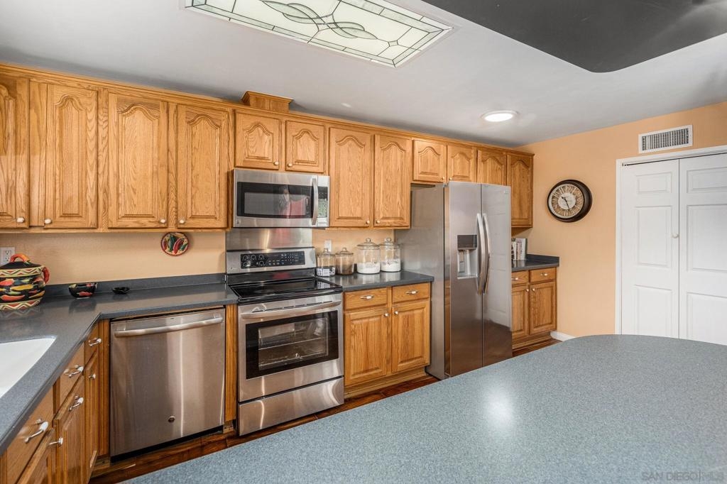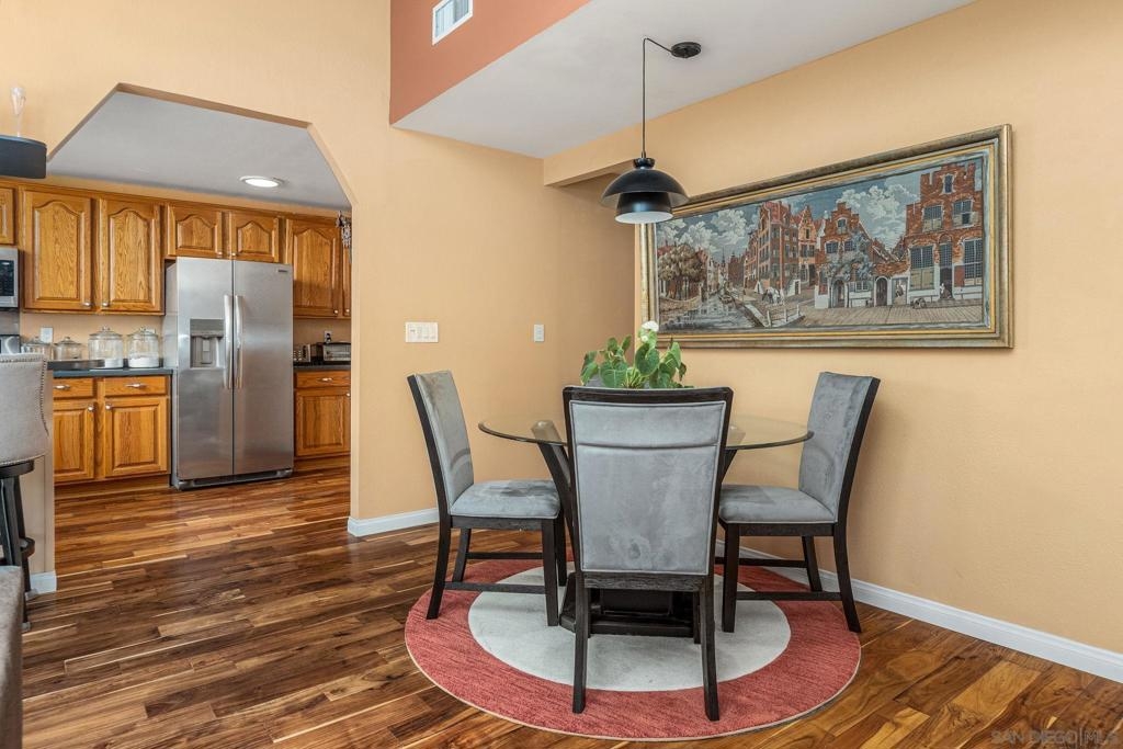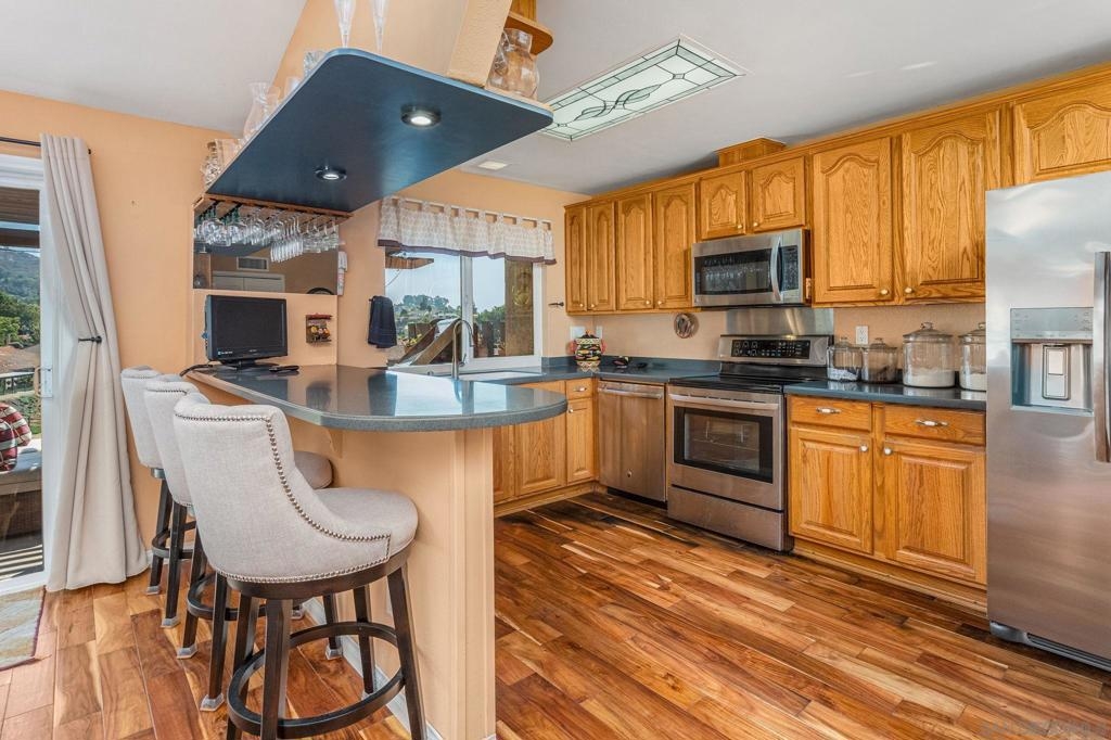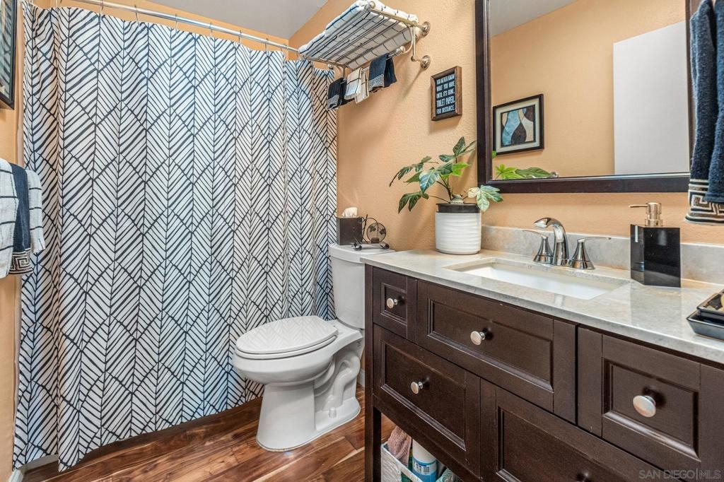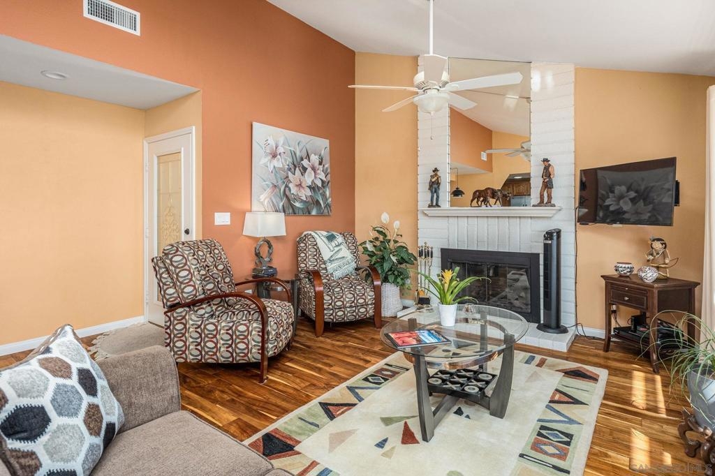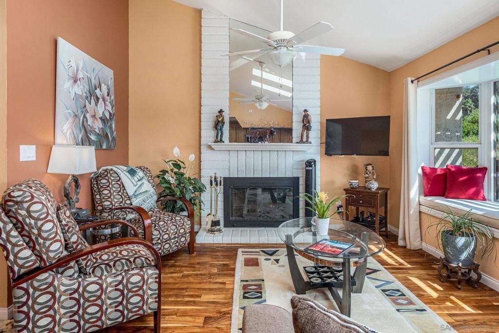Turn Key Home! Fantastic 3 bed, 2 bath, single story home in highly desirable area. This CameoWood home is perfectly situated to take advantage of the great views and terrific afternoon breeze. Beautiful wood flooring throughout most of the home. Wonderfully large kitchen with plenty of counter space, stainless appliances, vaulted living/dining combo, cozy fireplace, great back patio with views. Ample 2 car garage, 2 courtyards, short walk to the community pool. Plenty of natural light. San Marcos School District!