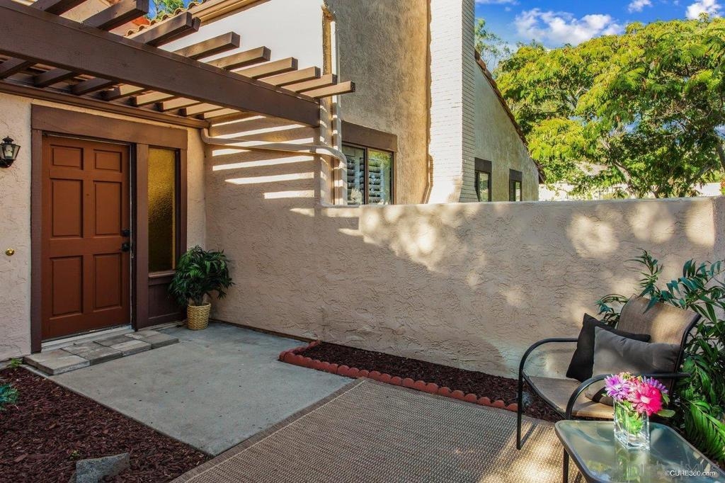 Truly feels like a home, from the welcoming, private, front courtyard entry to the volume ceilings, spacious living room, direct entry into a spacious two-car attached garage, to the bedrooms, each with their own patio.  Open kitchen with eat-in area has direct access to the back patio area which would be perfect for casual outdoor dining. 1.5 baths have been remodeled and are beautiful!  Refrigerator, washer and dryer remain.  Ready to move in!  Located in the desirable Cameowood community which is peaceful and serene. Please note: fireplace is non-operable and remains as is. The community has an inviting community pool, spa and BBQ area.  Conveniently located near shopping, restaurants and easy access to 15 freeway.  VA AND FHA APPROVED! Complex Features: , Equipment: Dryer,Garage Door Opener, Washer Topography: LL