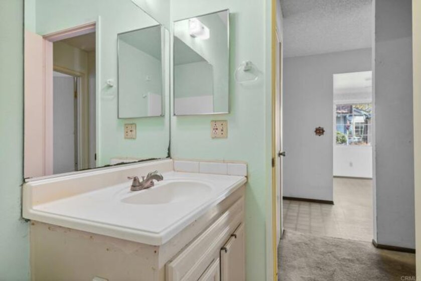 Welcome to 2469 Turnbridge! This cute, 2 bed 2 bath, is the perfect fixer upper project to start your homeowner journey. Featuring a desirable floorplan with views from the kitchen, dining room and living room of the open common area. The spacious living room and primary bedroom both open to high vaulted ceilings with lots of natural light. The primary has ample closet space with an attached ensuite. 2469 also has two car garage, central heating and AC, and a gas fireplace in the living room. The community has a swimming pool and hot tub with a club house. Your future home is just a short 3-minute walk away from shops and restaurants, as well as two grocery stores. It sits at a 3-minute drive to Glen View Elementary, 5-minute drive to Hidden Valley Middle and Orange Glen High. This is a great opportunity! Just one wall away from being an open concept Living / Kitchen / Dining room and with the addition of a large sliding glass door your dreams of indoor-outdoor living could be a reality.