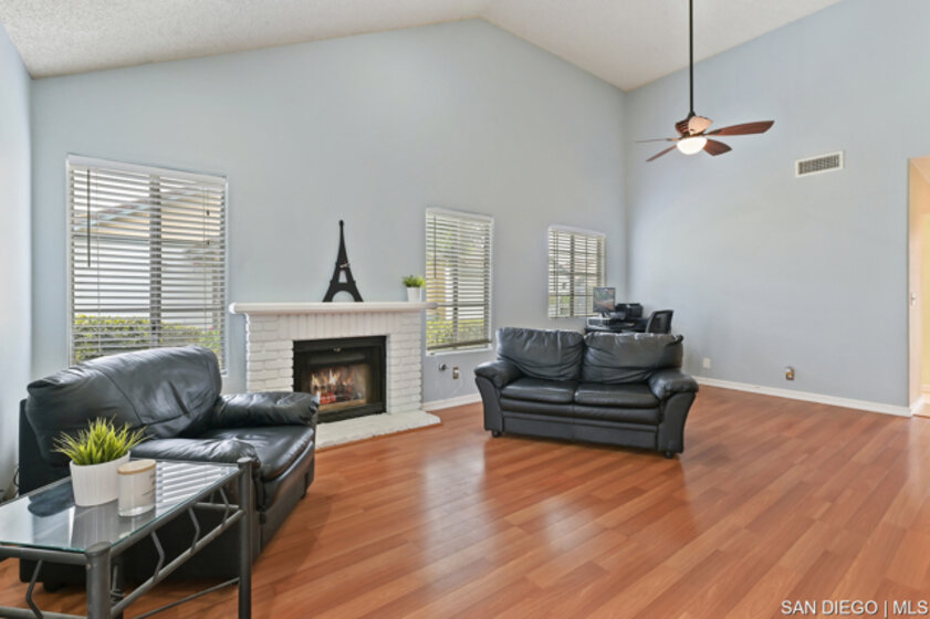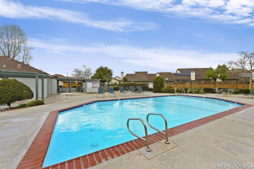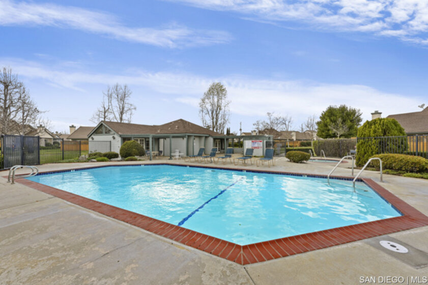 End unit townhome! Well maintained single-level end unit located in the desirable community of Cape Concord in North Escondido. This MOVE-IN ready 2 bed 2 bath home has vaulted ceilings, newly updated laminate flooring through out the main living areas of the home, a cozy fireplace, and a fresh carpet upgrade. High Ceilings and large windows bring in an abundance of natural light. Enjoy your morning coffee out in your spacious private patio. Detached two car garage that can be accessed from the front patio. Low HOA and leased solar. Great community amenities that include a sparkling clean pool and spa. Conveniently located, just minutes away from shopping, dining, parks, interstate 15 and Highway 78, plus so much more!