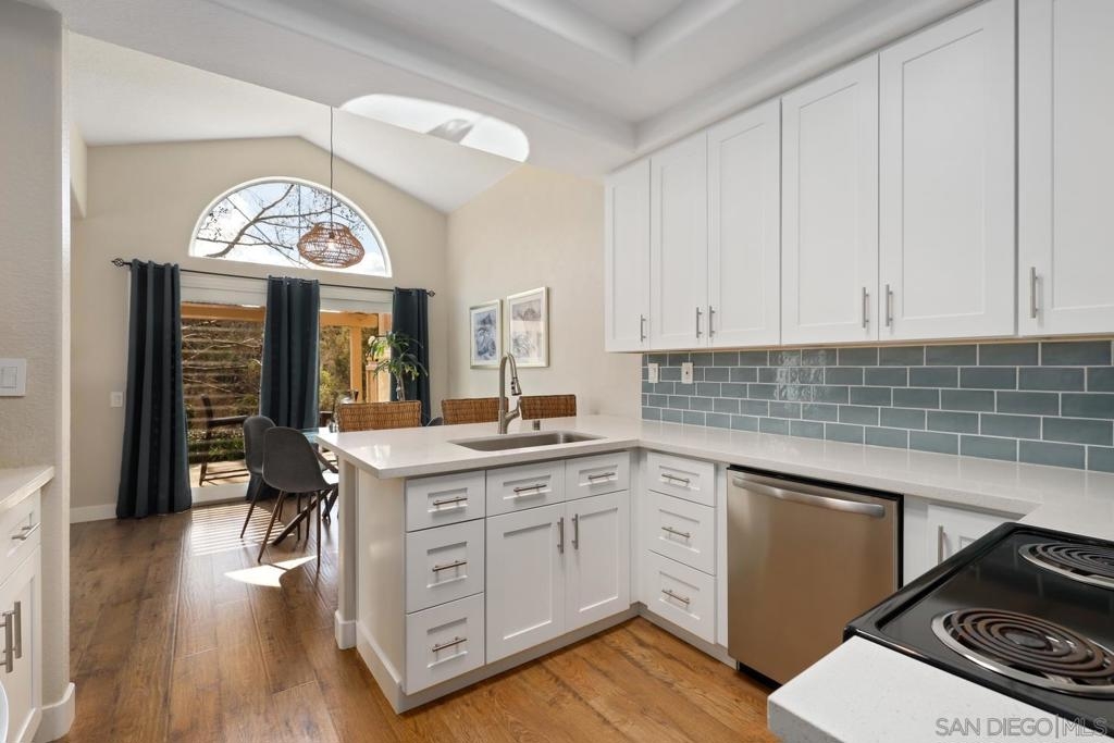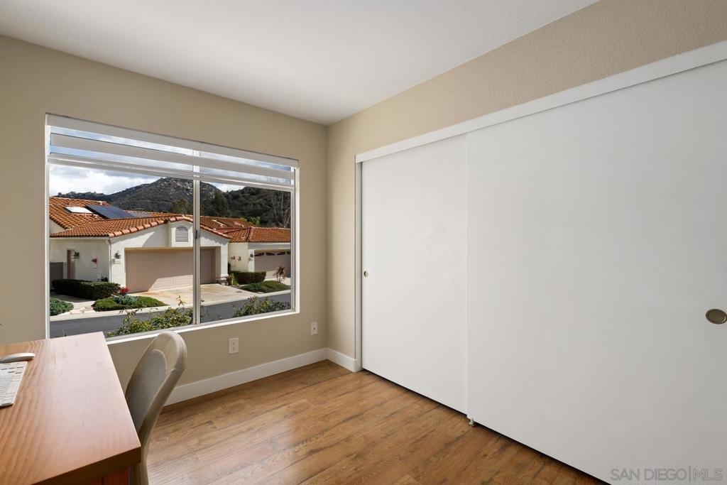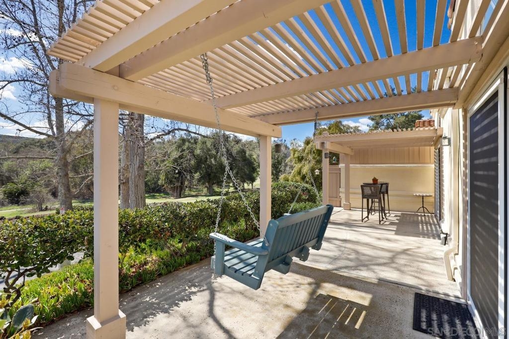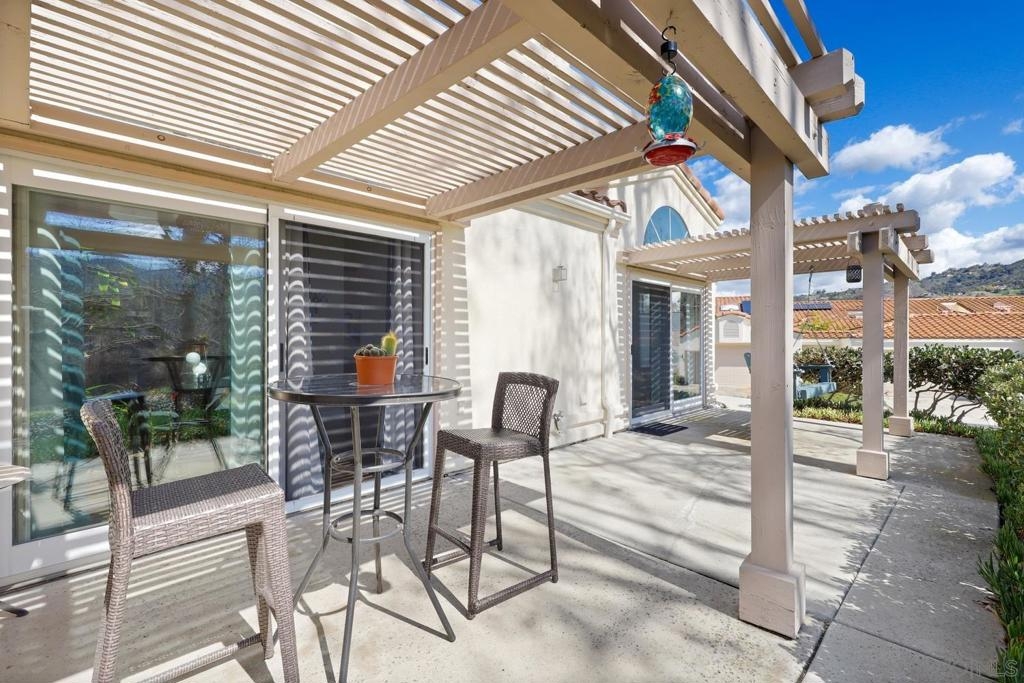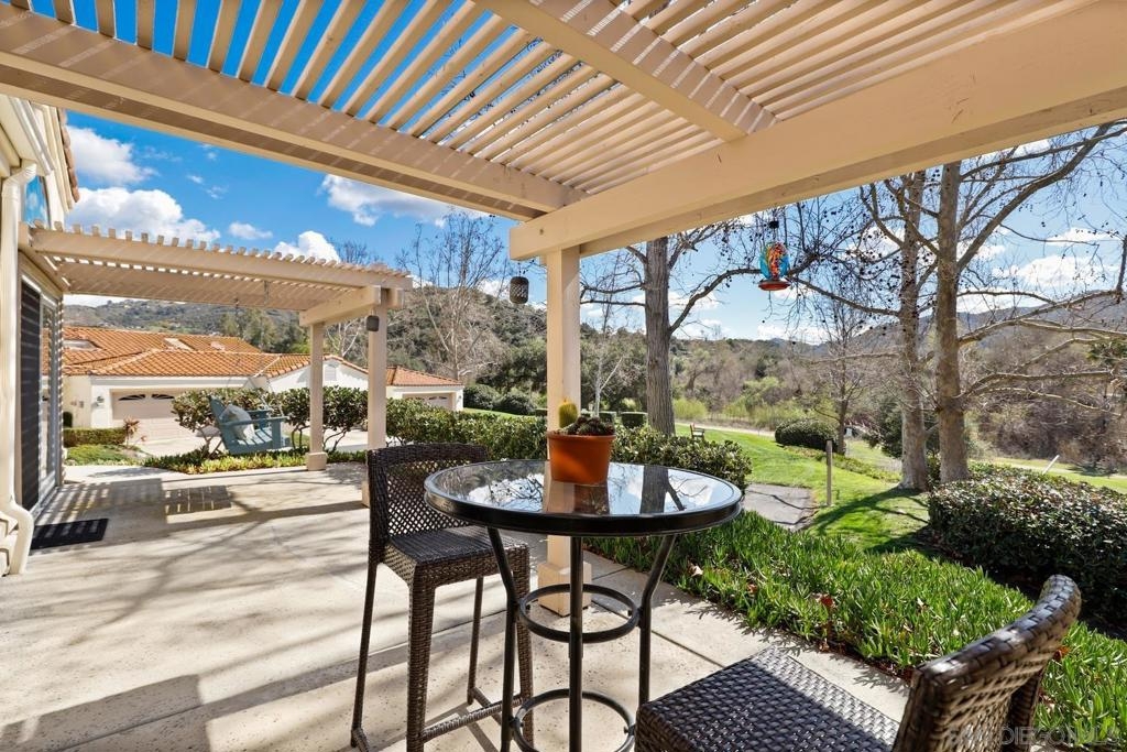 Enjoy resort-style living with owned solar in this bright and spacious single-story end-unit home overlooking the Castle Creek Golf Course. With cathedral ceilings, abundant natural light, and large windows, this home offers breathtaking mountain and golf course views from multiple outdoor spaces. The open floor plan features a generous living and dining area with vaulted ceilings, a cozy fireplace, and direct access to a large covered patio—perfect for entertaining or simply relaxing. The primary suite boasts a private patio, ample closet space, dual sinks, and an oversized tub in its en-suite bath. A spacious kitchen opens seamlessly to the living area, while an interior laundry room adds convenience. The two-car garage and extended driveway provide ample parking, and this home sits on one of the largest lots in the community at the end of a quiet street. Castle Creek Villas offers a community pool, BBQ area, and plenty of deck space for poolside gatherings. Nestled in the peaceful foothills of North County, this hidden gem is just 35 minutes from downtown San Diego, near Temecula’s wineries and the San Diego Zoo Safari Park. With easy freeway access and a prime location on the 18th fairway, this is a golfer’s paradise, surrounded by multiple championship courses. Don't miss this rare opportunity for tranquil golf course living.
