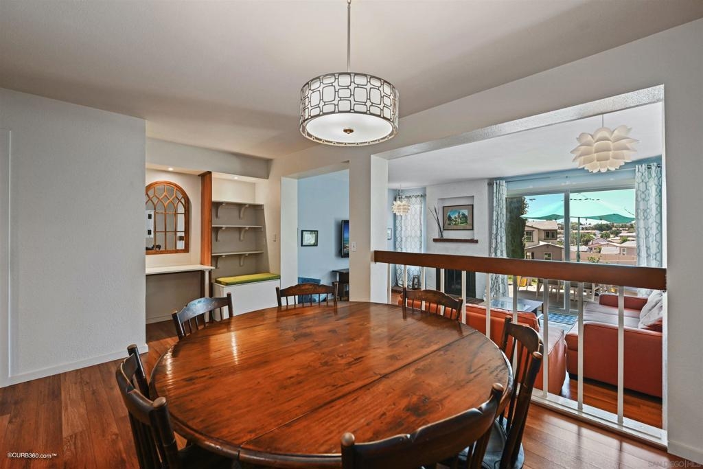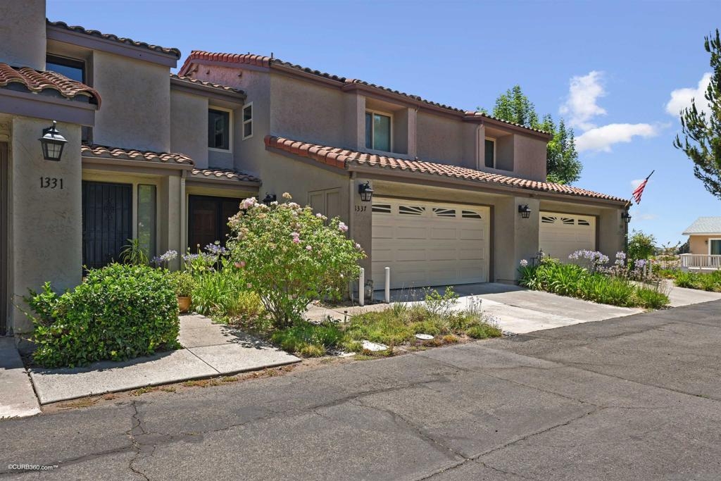 Beautifully updated home with views of the hills of Escondido. It sits high on the street to allow for a constant breeze and incredible sunset views—an impressive entrance with custom tile work and warm, inviting high-quality laminate flooring. Feel right at home with the open concept living area and luxurious custom kitchen. The kitchen offers new appliances, quartz countertops, and lots of pantry space. The patio has room for barbecuing and an outside dining table to enjoy meals. Both bedrooms are upstairs and feature full bathrooms; The primary bedroom has vaulted ceilings and a 9 x 6 alcove that can be used as an office space or sitting area. The oversized garage has plenty of space for storage. This home has guest parking close by and ample street parking for visitors. Close to great schools and shopping and downtown Escondido. A short drive to local parks and freeways. Equipment: Dryer, Washer Sewer: Sewer Connected Topography: LL,GSL