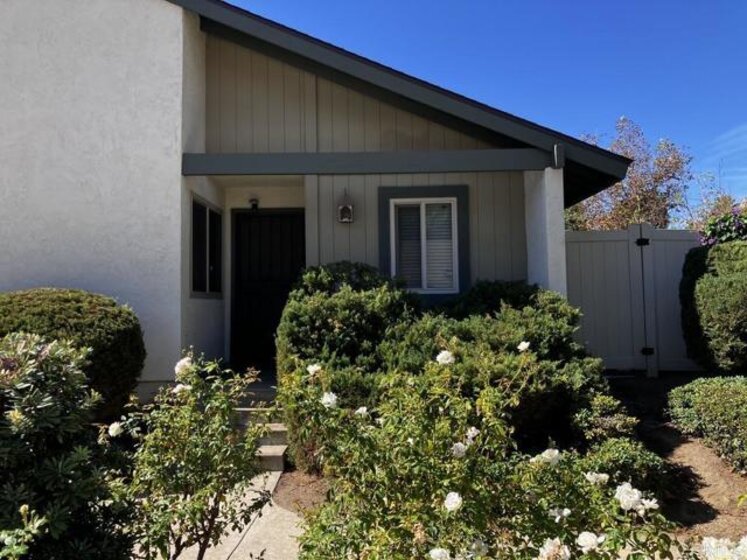 SWEOB $499,900 - $529,900. Single level, end unit condo on a quiet cul de sac location in desirable Escondido Hills. Updated windows/blinds and vaulted ceiling make this unit very bright and airy. The primary bedroom is very large with mirrored triple closets. Enjoy your private patio, attached 1 car garage and 2 additional parking spaces. Although this unit is in good condition, it is ready for a new owner to make it their own by updating. Pricing reflects the need for updating. Cooking and dryer is electric. Complex offers 2 pools, walking trails, playground and many grassy areas. Very pet friendly. LR is virtually staged. All information is deemed correct at the time of the listing. Buyers to verify all information before COE