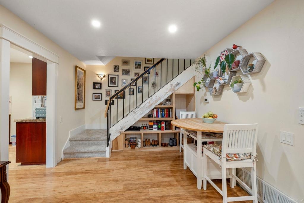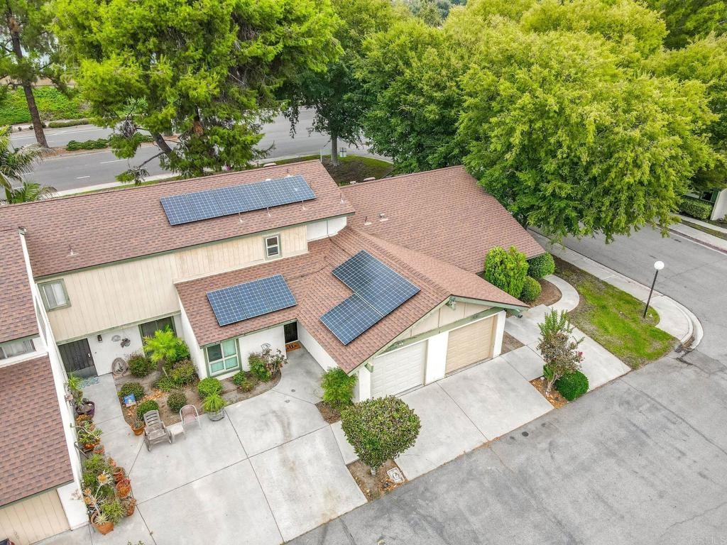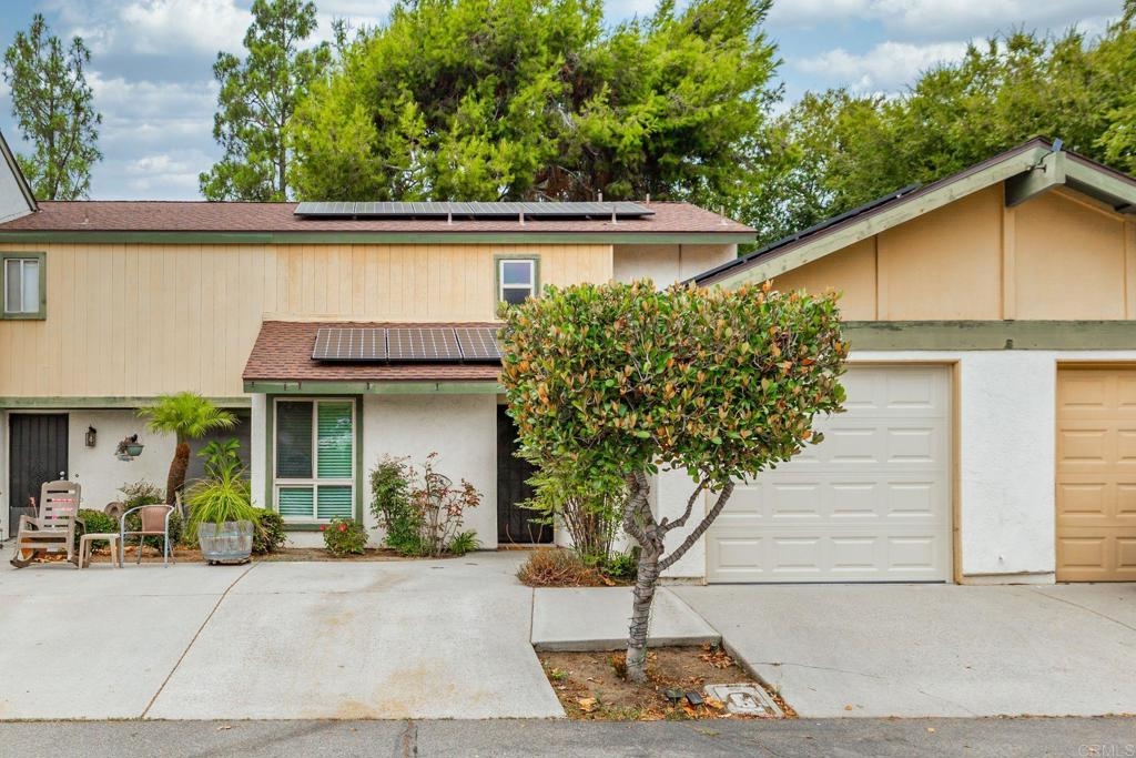 Seller will entertain offers between $569,999 and $609,999! Remodeled and Spacious, Attached Single Family Residence, in Escondido! Conveniently located in the highly desirable community of Escondido Hills. This 3 bedroom, 1.5 bathroom ~1,206 sq.ft. townhome has an open floor plan with a large patio area, amazing common areas and a beautiful, newer roof (recently completed by HOA). Marvelously engulfed in natural sunlight, the fabulously updated interior dazzles with newer flooring, a modern color palette, an organically flowing floorplan, and a large living room. Wonderfully reimagined for the needs of contemporary entertaining, the chic kitchen features newer appliances, upgraded countertops, custom cabinetry, premium hardware, an electric range/oven, a built-in microwave, a dishwasher, an oversized window with lovely views and an adjoining dining area. Ideal for alfresco experiences, the outdoor space includes a patio for BBQ's or a relaxing cup of morning coffee. Blissfully relax in the well-sized main bedroom with ample closet space. Remodeled upstairs bathroom with custom enclosure and an elegant vanity. Two additional bedrooms are generously sized, with dedicated closets, perfect for guests or home office. One bedroom is located downstairs, see attached floor plan! As a brilliant bonus, all bathrooms have been remodeled to delight with upscale style and design. Other features: 1 car direct access garage and 1 parking space, newer ceiling fans, laundry in garage, newer HVAC ducting and a solar system! Community swimming pools, a quick drive from Downtown San Diego, close proximity to several vineyards and multiple beaches, close to shopping, schools, entertainment, I-15 and so much more! Get all the advantages of this move-in ready attached SFR and start living the good life today.