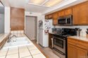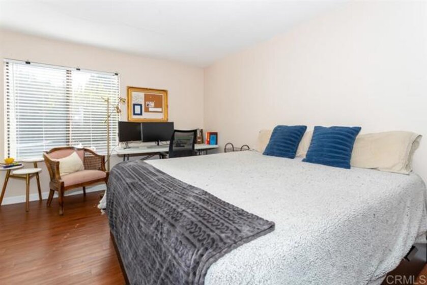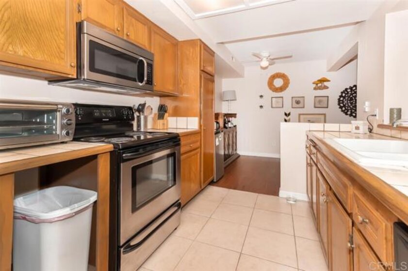 RARE 1Br, 1Ba, 865 esf gem end unit w/spacious living area along w/beautiful flooring, kitchen w/SS oven and microwave, dining area w/ceiling fan, granite counters in bathroom & deck that's fully covered, great for kicking back, relaxing & BBQing! Gated community w/clubhouse, pool & spa. Washer dryer hook ups in outside deck closet, two assigned parking spaces with one covered. Don't miss this opportunity. Welcome home! [Supplement]: Kitchen has convenient eat at bar that opens to main living area and deck to give this unit an extra open and airy feeling. Six panel doors in bedroom and bathroom with upgrade baseboards throughout. Park like setting that has well maintained landscaping. Community laundry room and elevator add to this complex and its convenience. Entry to unit requires private access to exterior of building for added privacy and security. This is a very rare larger 1/1 unit the complex has to offer that rarely ever goes on the market. Take advantage of this affordable price to purchase and own your own home.