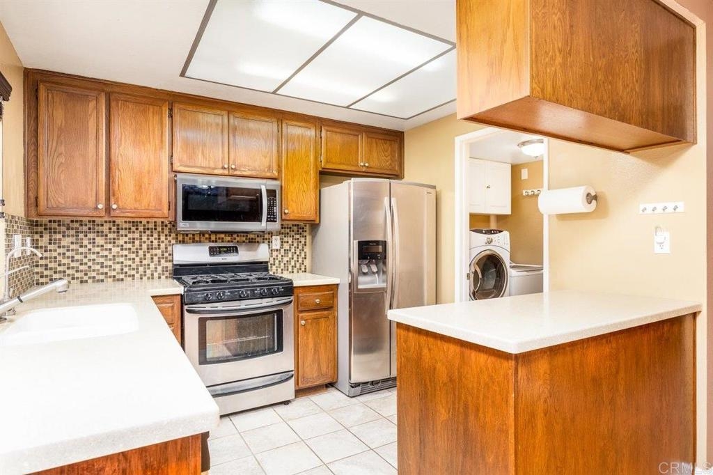 3 Bedroom, 2.5 Bath Townhome located in the desired & Gated "Felicita Villas" with a Spacious floor plan that was nicely remolded in 2015 & Features Upgraded Kitchen Counters w/glass Tile Backsplash & Stainless Appliances. All Bathrooms have been Upgraded with Designer Cabinets, Vanities & Sinks. You will love the Spacious Master Bedroom w/French doors leading out to a Balcony/Deck. Fenced Backyard/Patio is ample sized for Children & Pets. HOA fee includes sewer, trash & water. Other features include newer AC, ceiling fans, laundry room, quiet location, covered parking, an additional assigned parking, and visitor parking very close proximity to the unit. The gated community offers lush landscaping, mature trees, quiet walkways, community pool and is close to all major freeways and there are several shopping centers, entertainment options available within walking distance, and easy drive to all San Diego has to offer including the Pacific Blue.
