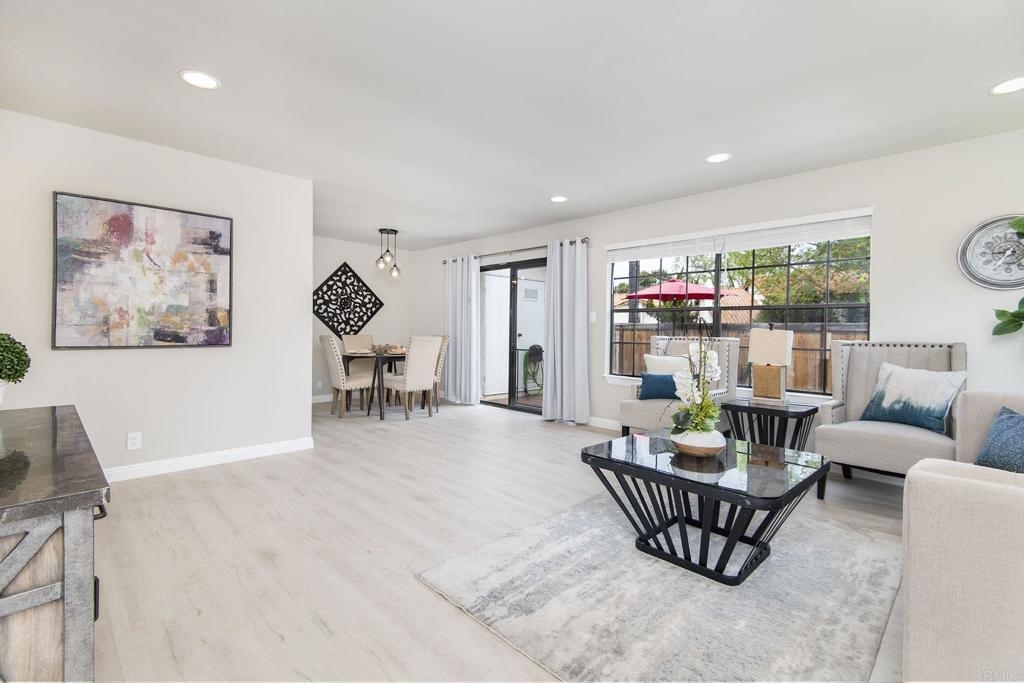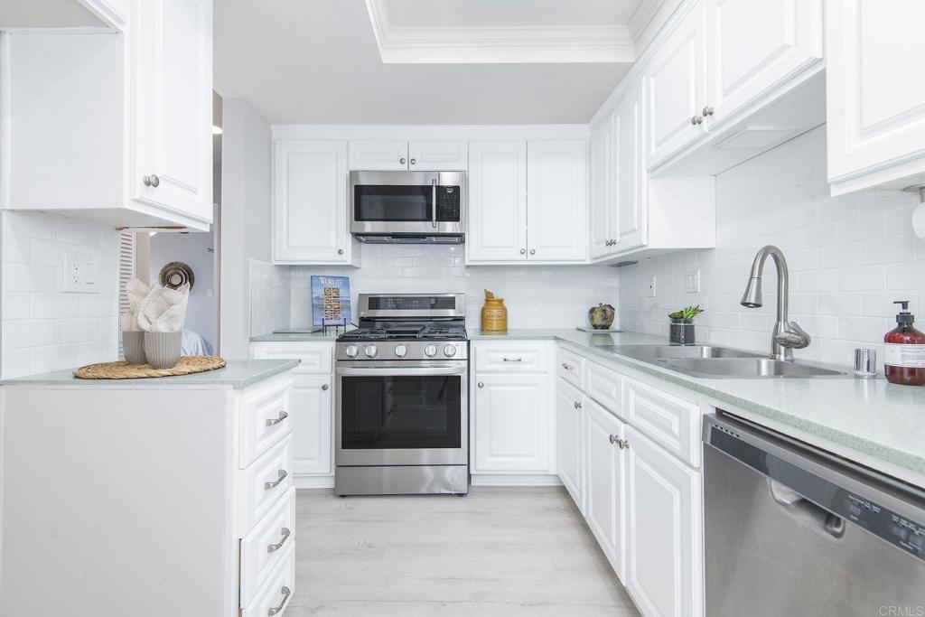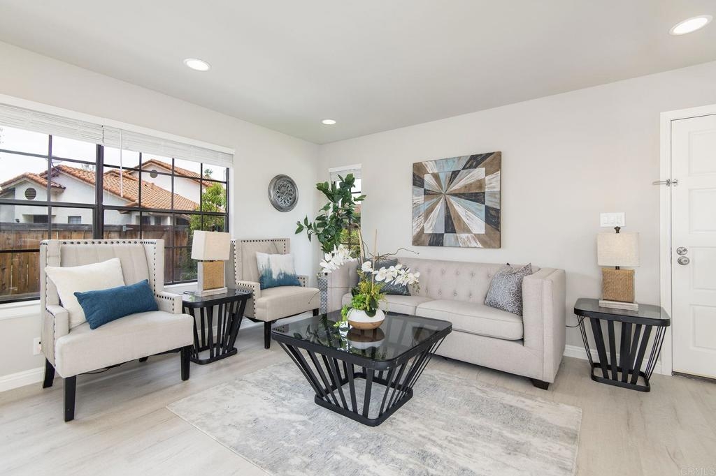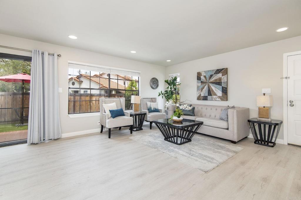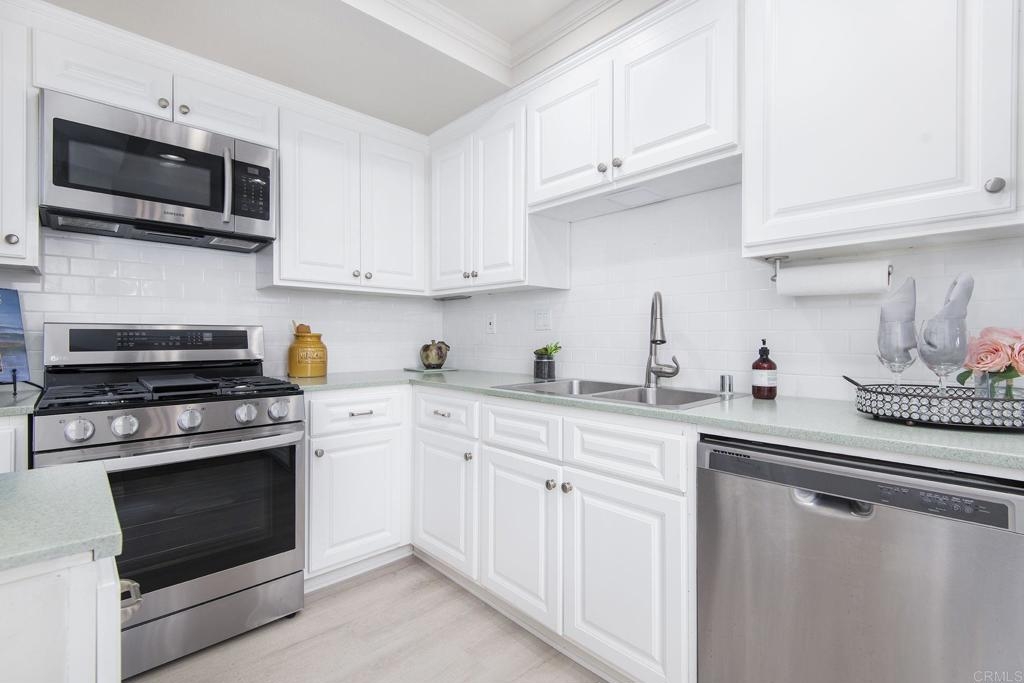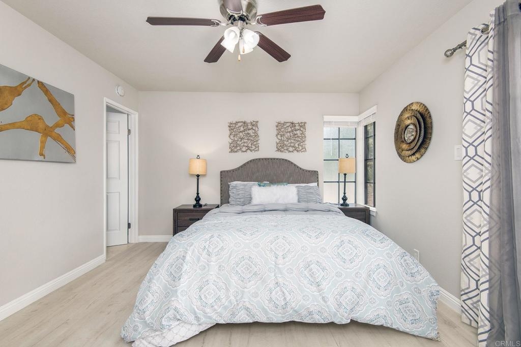 Beautiful, fully upgraded 2 bed, 2 baths, single-story end-unit condo with only 1 common wall in the gated community of Felicita Villas. Fresh paint, luxury vinyl plank flooring, fully upgraded kitchen including new quartz countertops, white shaker cabinetry, subway tiles, and new name-brand appliances. New faux wood vinyl blinds installed throughout the home. This stunning condo also features bathroom upgrades including new vanities and fixtures. The home includes a decent-sized patio right outside the living room area and another smaller patio outside of the master bedroom on the opposite end of the unit. Community amenities include 3 jacuzzis throughout the property and a large gated pool with bathrooms and showers. Pets are allowed w/restrictions (1 dog/1 cat). There are 2 parking spaces included with this unit (1 covered/ 1 directly in front of the unit). Plenty of guest parking spaces are provided throughout the gated community.