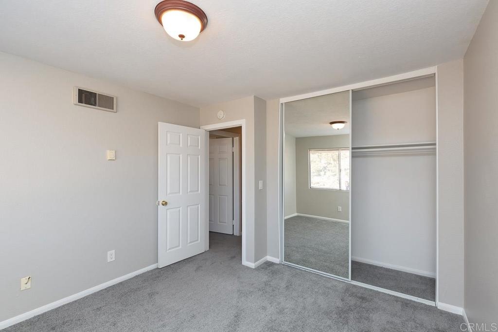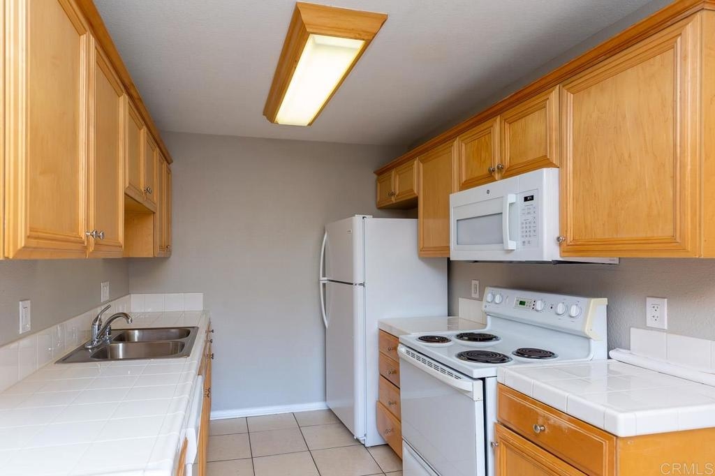 Beautifully refurbished upstairs two bedroom with large master walk in closet, two bathroom condo with one car detached garage and sweeping views from balcony of greenbelt overlooking community. Property features new window coverings and screens throughout, tile in the dinning room and kitchen, new sleek grey tone carpet and cool grey tone paint with sharp white trim ties this home all together in welcoming you home with a modern yet cool and cozy vibe. Kitchen features oven/range, new refrigerator and new built-in microwave and dishwasher. Community features pool, spa and laundry facilities.