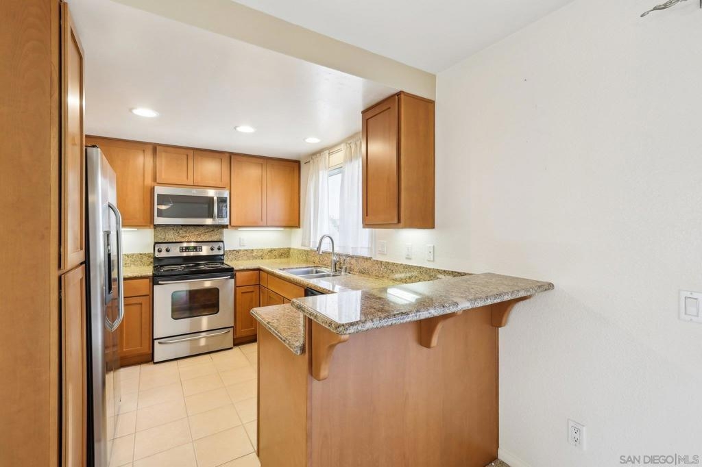 VA Approved and Move-In Ready! Tucked away in the desirable Heritage at Canyon Pointe community, this bright and spacious end-unit townhome offers comfort, convenience, and a touch of privacy with its own fenced yard and patio—perfect for relaxing or outdoor entertaining. Built in 2001, the home features an attached one-car garage plus an additional assigned parking space. Enter to discover a welcoming living room with a cozy gas fireplace. The kitchen is outfitted with granite countertops, stainless steel appliances, and warm wood cabinetry. Upstairs you'll find all three bedrooms, including a primary suite with its own private balcony and ensuite bath. The two secondary bedrooms share a full hallway bath. Full-size laundry is conveniently located in the garage—and the washer and dryer are included! Enjoy resort-style living with access to two sparkling pools and spas, a clubhouse with pool table, BBQ area, and a well-equipped gym. Ideally located close to shopping, dining, and major freeways, this home combines peaceful community living with urban accessibility.