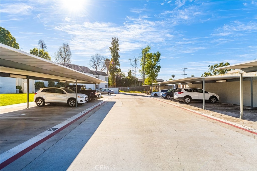Nestled at the end of a cul-de-sac, stroll into the cute and quiet Hidden Glen community. This ground level 1 bedroom 1 bath opens into a large living room with ample natural light. New carpet and paint throughout! The large kitchen has been remodeled with updated cabinets and comes with all the appliances included! Pass the in-unit laundry closet to get to the bathroom with a full tub and shower. Step into the adjacent spacious master bedroom with a beautiful built-in closet arrangement and more natural light. Enjoy a short walk with close proximity to the community pool, spa and BBQ area. Great location! Serene and private, yet very close to shopping, freeways, parks and the San Diego Zoo’s Wild Animal Park. The unit has two assigned parking spaces, one with a covered carport. A must see!