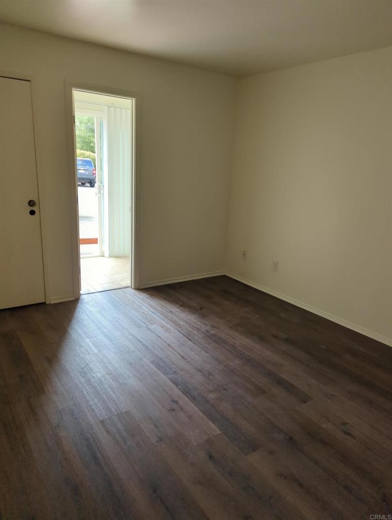 A hidden GEM! Located in Hidden Meadows Area your future condo awaits! Quiet yet convenient to I-15 as well as a short drive (8 miles) to San Marcos. Enjoy scenic surroundings and a view of Boulder Oaks Golf Course. Nice lower unit with easy access to parking and no stairs. Dual glazed windows, new laminate flooring, fresh paint and a new Heating/AC unit to enjoy for many years. One assigned parking with ample additional parking. In addition, Hidden Meadows Community Pool and tennis courts can be added for $330 annually for those wanting access. This unit comes with an additional enclosed back room. Direct vehicle access. HOA fee pays for water, sewer and trash!