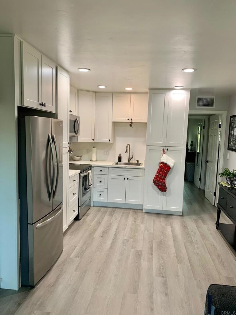 Coveted End Unit brings so much light in!! Updated in 2022. New flooring; new bathroom; new kitchen with stainless steel appliances & granite countertops; new raised ceiling & canned lighting throughout; new AC unit; new paint & trim throughout; & even NEW in-unit stackable washer/dryer set! New Plantation Shutters & Ceiling fans! Must SEE! Down stairs unit in quiet community with one assigned parking spot just steps outside the back patio door. Option to close in the small patio area of the unit to add square footage to the bedroom. Quiet Hidden Meadows community!