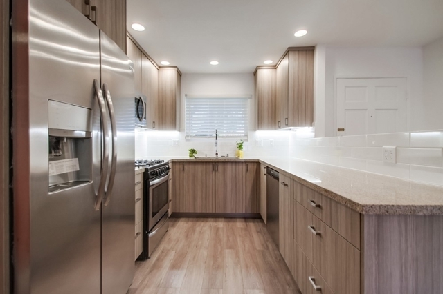 On trend contemporary single story home ready for move in! Kitchen has high end Italian cabinetry, modern arc faucet with deep sink, stainless steel appliances and granite countertop. Smooth textured walls and ceilings are complimented by triple moisture laminate flooring throughout. Living room has fireplace, recessed lighting & large sliding glass door leading to a private patio. Bathrooms have floating sinks, rain shower heads & red light mirrors. Included:a/c, w/d hook up, fans, blinds, 1 car garage. Neighborhoods: East Escondido Complex Features: ,, Equipment: Garage Door Opener, Range/Oven Other Fees: 0 Sewer: Sewer Connected Topography: LL