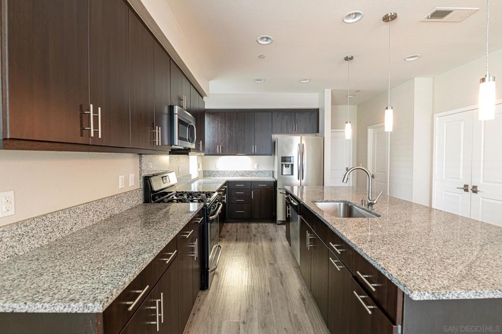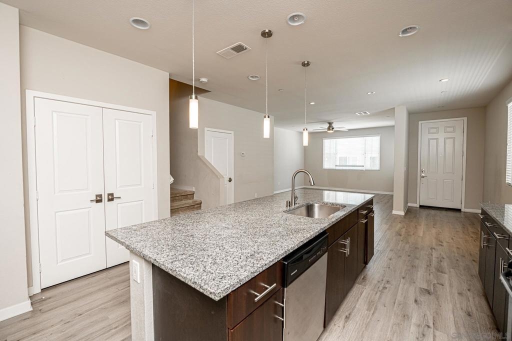 Move in ready townhome conveniently located by the 15 & 78 freeways. Built in 2015, this modernized home offers stainless steel appliances, granite countertops, stylish laminate flooring, and a spacious private patio. Upstairs features a huge loft that can be used as an optional bedroom plus three other bedrooms including a spacious master with a walk-in closet, en-suite bathroom, and his and her sinks. The laundry room is also conveniently located upstairs and includes a stacked washer & dryer. The attached two car garage comes equipped with a 240 volt outlet ready to charge any electric vehicle as well as a tankless electric water heater. You’ll love this beautiful, updated townhome with low HOA fees and a great location. Equipment: Dryer,Fire Sprinklers,Garage Door Opener, Range/Oven, Satellite Dish, Washer Sewer: Public Sewer Topography: GSL