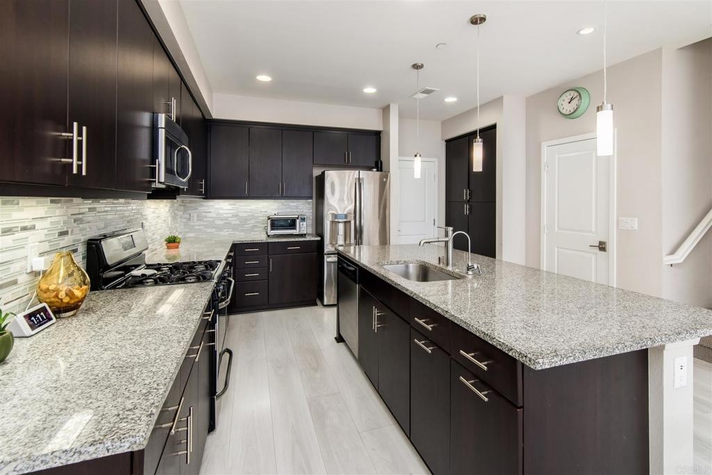 Stop the car! This is your new home! Move in perfect! Highly upgraded with vinyl wood floors, upgraded carpet, upgraded appliances, including a high tech water filtration system at the kitchen sink. Also lovely window treatments! This home sits at the very top of the neighborhood so no unit behind giving extra privacy! Upgraded refrigerator and washer and dryer included! Granite counters, beautiful wood cabinets, sunny orientation, 2 car attached garage and a warm sunny front patio. For your furry friend, there is a small doggie play park very close by! Great location close to freeway access, restaurants, golf, shopping, so very convenient! These lovely townhomes are only a few years old and go quickly when coming on the market, so don't delay!