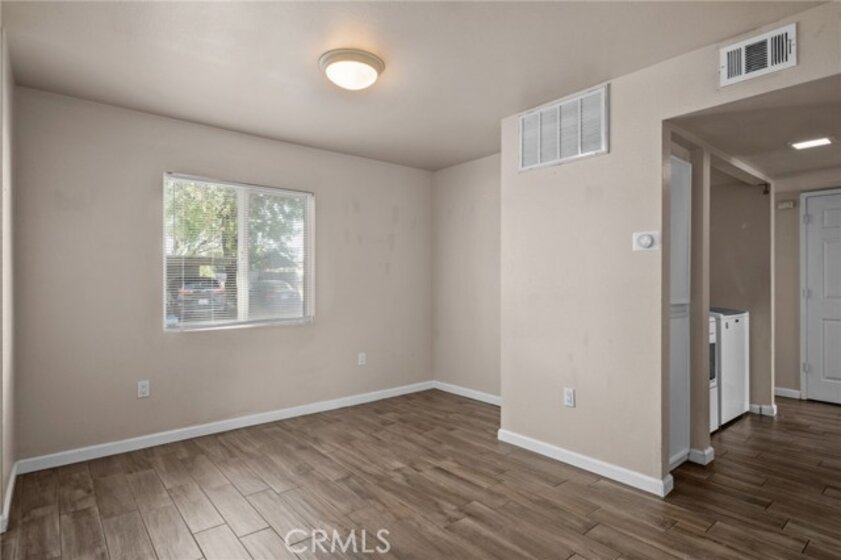 Welcome to this charming ground-level condo featuring two bedrooms and one bathroom in a well-maintained community. Inside, laminate flooring runs throughout, creating a clean and cohesive look. As you enter, you’re greeted by a comfortable living room with sliding glass doors that open to a private patio—perfect for enjoying fresh air or a morning coffee. The open-concept layout continues into the dining area and kitchen, offering a seamless flow ideal for everyday living and entertaining. Down the hall, you’ll find the two well-sized bedrooms and a full bathroom. The home also includes an in-unit laundry area with a convenient linen closet for added storage. The HOA takes care of the exterior landscaping and common areas, allowing for low-maintenance living in a neat and welcoming setting.