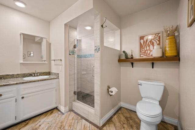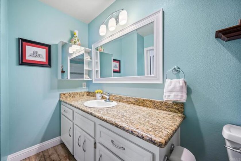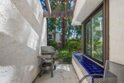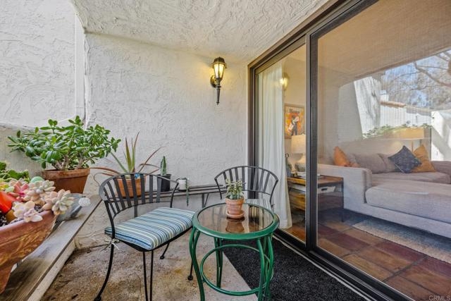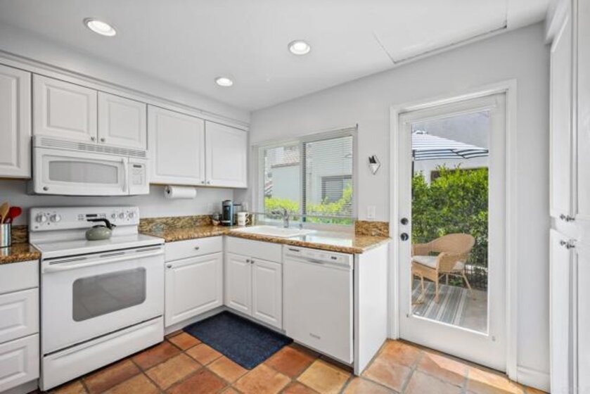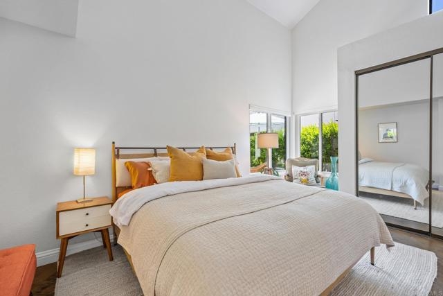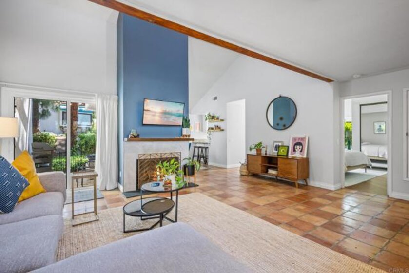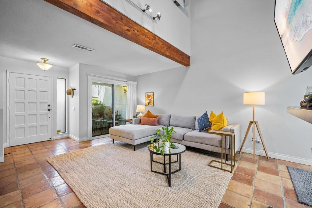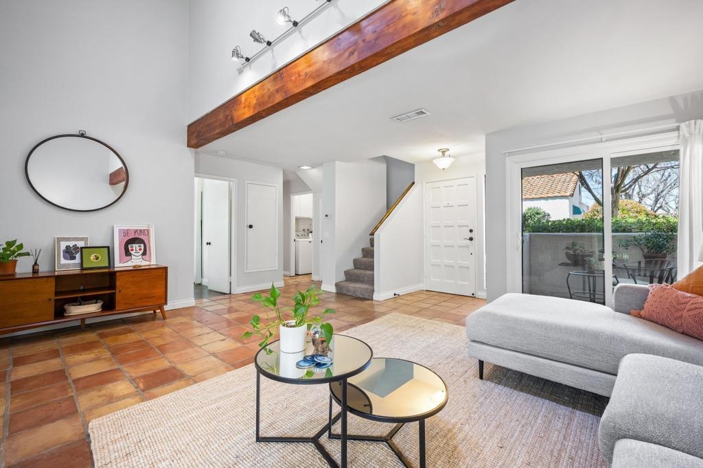 Welcome to this stunning hacienda inspired townhome in the desired community of Sunset Woods! From the moment you step inside, your senses will transport you to living in a Spanish village, complete with soaring vaulted ceilings and an exposed wood beam. The Saltillo tile flooring, 3 private patios for seamless indoor-outdoor living, and numerous thoughtful finishes creates a warm and inviting atmosphere that will make you feel right at home. As you make your way through the house, you'll notice that this home has 2 separate bedrooms with their own en-suite bathrooms - one bedroom on the main level and one bedroom upstairs. The vaulted ceilings in both of the bedrooms that bathe the rooms in natural light. For your convenience, this home includes a large 1 car GARAGE with space for storage, additional parking spot, and designated IN-UNIT LAUNDRY room for FULL SIZED appliances which adds practicality to this already impressive home. Stay cool all summer because there is CENTRAL AC! The Sunset Woods community only has fifty five units with courtyards, fountains and lush greenery adorned throughout which truly makes it feel like a small village. Conveniently located close to the freeway for easy access and lots of shopping. Don’t miss out on the opportunity to make this beautiful home yours!