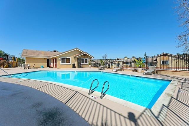Wonderful 3BR/2BA condo located in the VA-approved complex of The Heritage at Canyon Ponte. This is a one-story unit on the ground floor located directly across from the community amenities for only $349,900! It's been beautifully updated with rich laminate wood flooring, granite counter-tops with bar seating, SS appliances, pull out drawers in pantry, 4" baseboards, horizontal faux-wood blinds and has a handsome brick fireplace & A/C. The primary suite and one of the secondary bedrooms have very large closets and there is a full wall of storage cabinets in the hallway. The enclosed patio has a full-sized washer & dryer in the laundry closet. This complex features 2 pools, 2 jacuzzis, a clubhouse, BBQ grills, an exercise room/gym and a billiards room. The HOA fee includes: water, sewer, trash, exterior/roof/common area maintenance and exterior termite (Buyer/Buyer's Agent to verify). There is a covered parking space nearby, which is assigned to this unit, plus plenty of guest parking throughout the complex. This home is conveniently located near large commercial retailers for quick & easy shopping and only a mile from downtown Escondido. Enjoy nearby activities such as golfing, hiking, fishing and wine tasting or spend the entire day at the world famous San Diego Zoo Safari Park marveling at all the cool creatures. Quick access to the 15 and 78 freeways, too. Dare to Dream... Then make it yours!