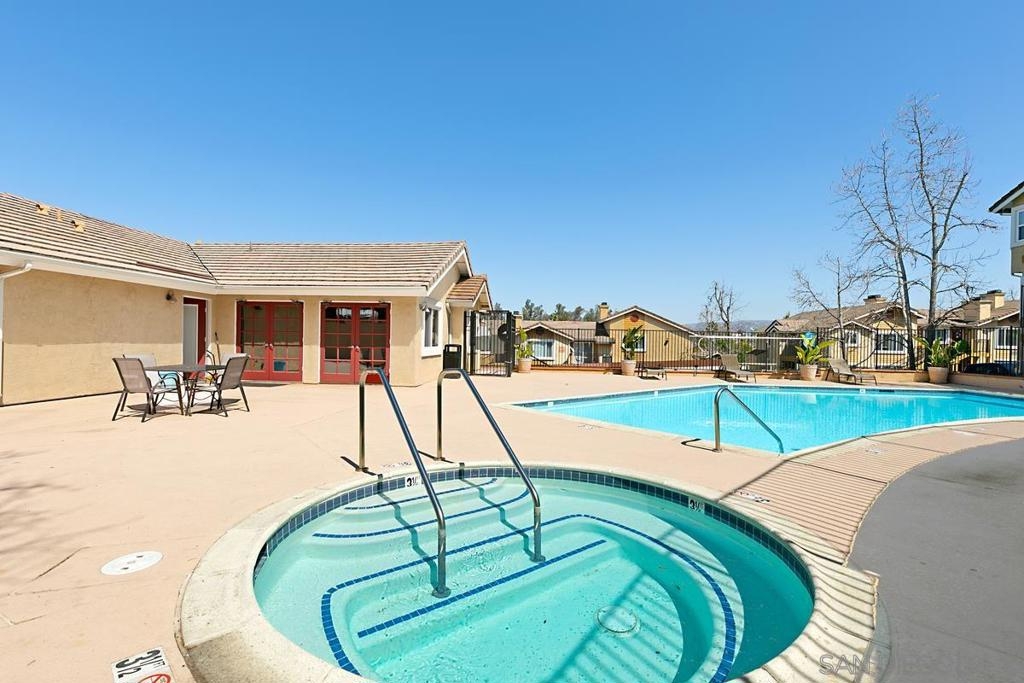 Welcome to this beautifully updated ground floor unit located at the highly sought-after community of The Heritage at Canyon Point. Offering a combination of comfort and convenience, this home has a single story, open-concept, split floor plan layout with spacious living areas, featuring newer flooring, natural light, and a cozy fireplace. The kitchen is fully equipped with updated appliances, granite countertops, ample cabinetry, and a breakfast bar, perfect for casual dining. The primary suite includes a walk-in closet and en-suite bathroom. The second bedroom is generously sized, ideal for guests, a home office, or additional living space. A private patio extends your living area outdoors, offering a peaceful retreat to enjoy your morning coffee or unwind after a long day. Additional features include in-unit laundry, central A/C, and assigned parking. The Heritage at Canyon Point community offers resort-style amenities, including pool, spa, clubhouse with kitchen, pool table, gym, and dog park, all surrounded by lush landscaping.