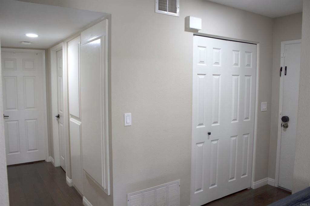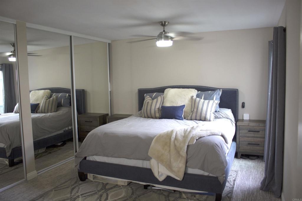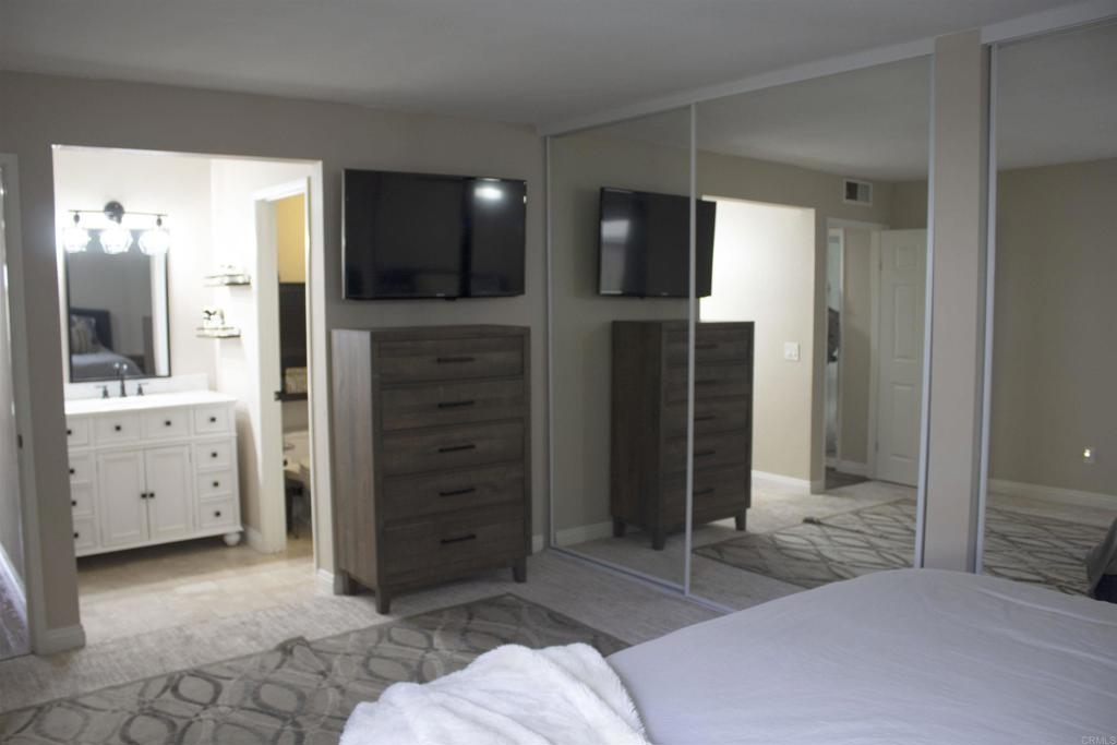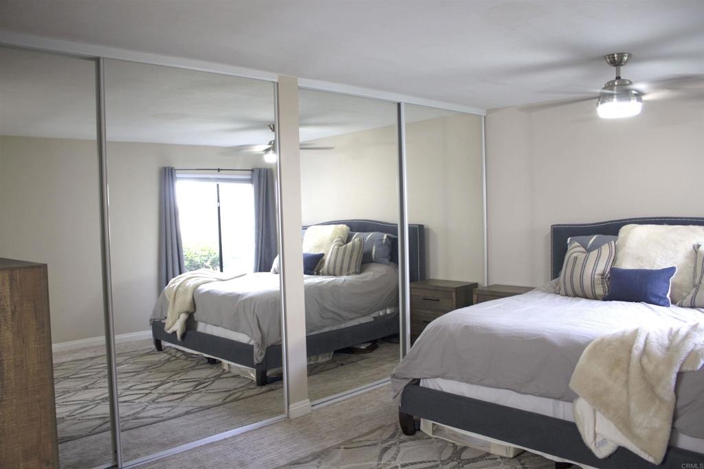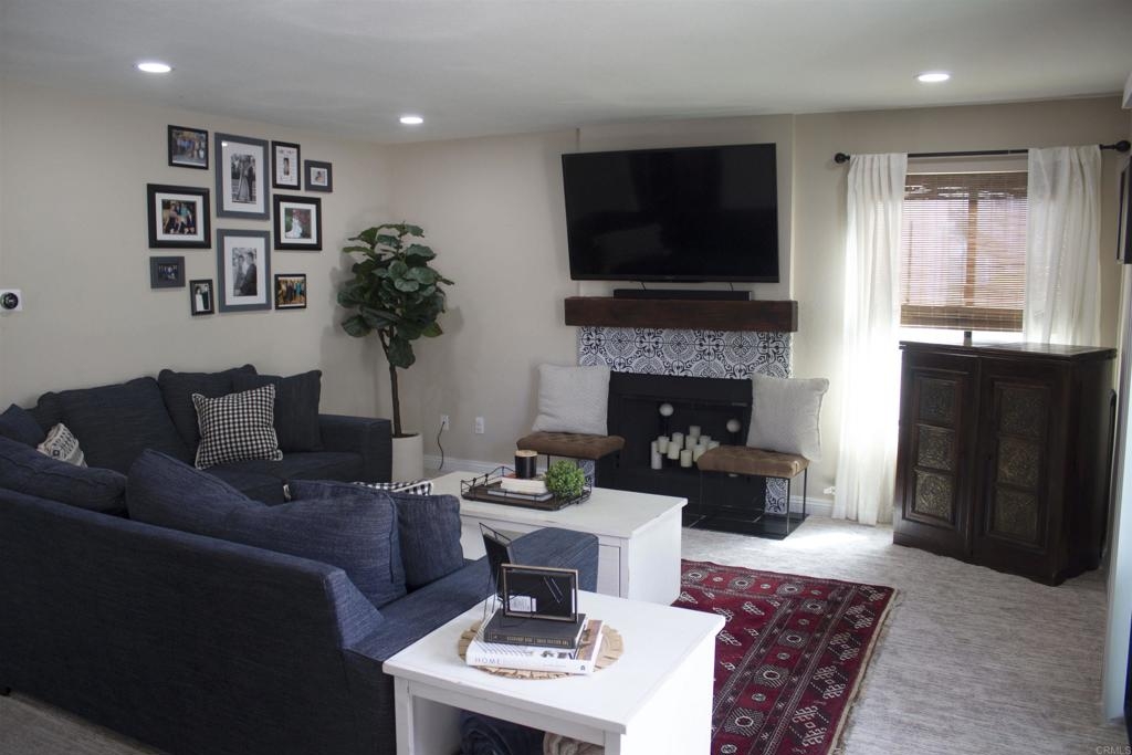 Welcome to this move in ready bright with open floor plan and the smartest unit in the community! Ring Doorbell Pro, August lock, Nest thermostat, Nest smoke/Carbon monoxide detector and Ring alarm system. Kitchen featuring updated cabinets, countertops, subway title backsplash with Stainless-steel stove, microwave & dishwasher. Black hardware throughout and updated mosaic title fireplace in living room. Updated bathroom vanities with barn door style shower glass door in primary bathroom. New carpet in bedrooms and living room with wood flooring in kitchen, dining room and hallway. Recessed lighting in living room and kitchen. Ceiling fans and custom closet systems in both bedrooms. Double mirrored closet doors in primary bedroom with large mirrored closet in secondary bedroom. Plenty of closet and storage space. Large patio with space for full size washer & dryer and more storage. The highly sought after fully gated complex features open areas with beautiful landscaping, community pool, spa, sports courts for basketball, pickleball & tennis. HOA dues cover water, sewer, trash, roof and community maintenance. 2 assigned parking spaces, one carport with large storage plus one uncovered space. Plenty of guest parking and street parking. Private access gate to shopping center. Walking distance to Vons, Trader Joes, popular coffee shops and restaurants.