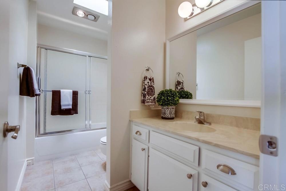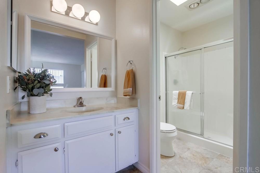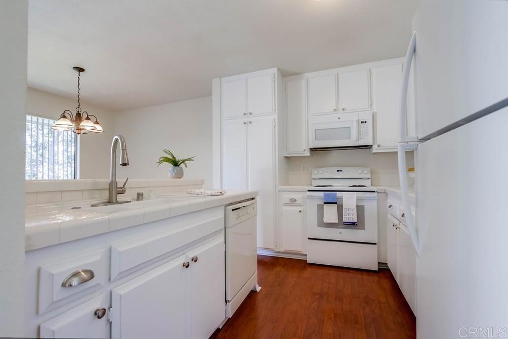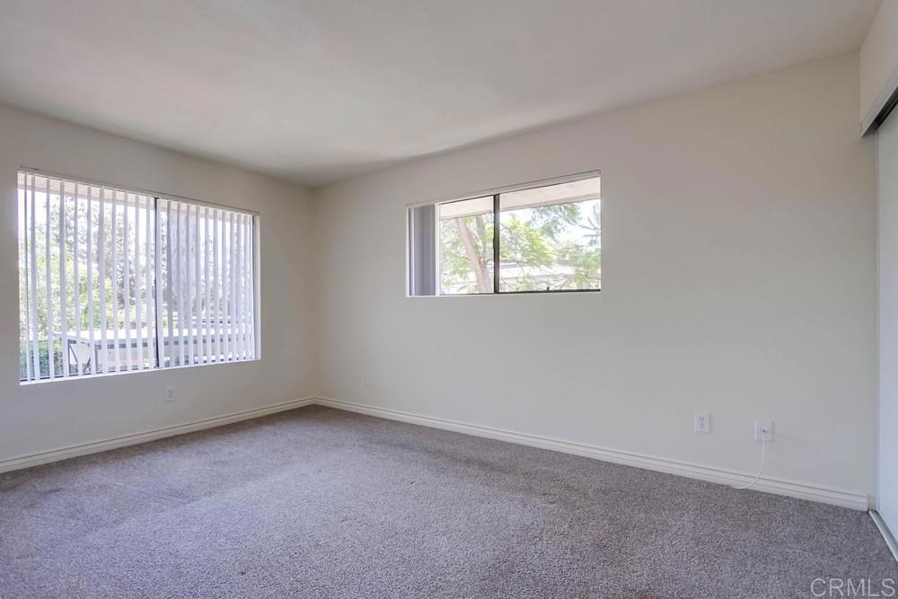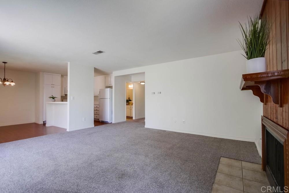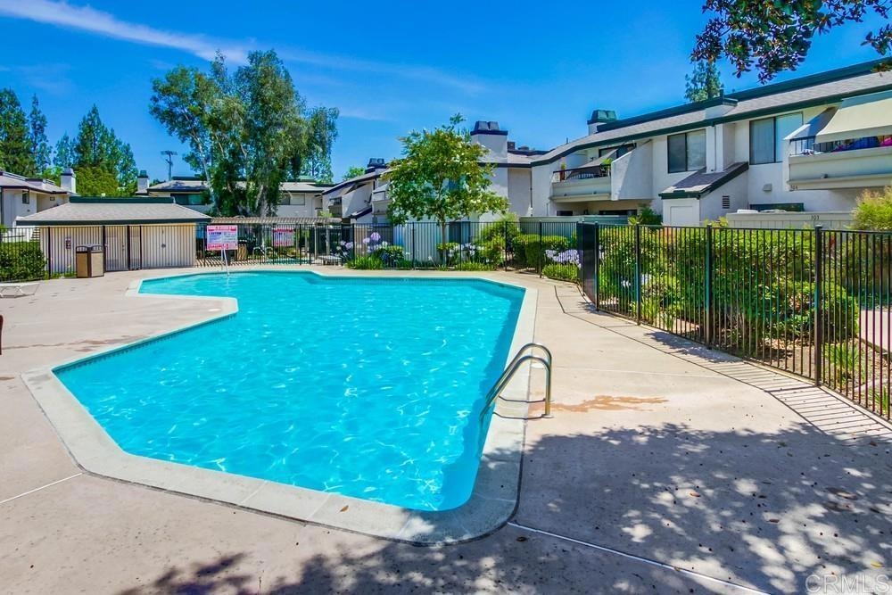 Updated, light, bright, clean. Move-in ready, neutral decor. 2 large bedrooms, 2 full baths in highly desirable location in beautiful Vermont Villas in South Escondido. Quiet interior end unit location. Huge Living Room and generous sized bedrooms. Double closet in master. Large private patio/deck. Includes full sized washer, dryer and refrigerator. Central Air. Nice appliances. Laminate floor in kitchen and dining area. New window blinds. Fireplace. 1 assigned carport with storage cabinet and 1 assigned uncovered space. Sparkling community pool, spa, tennis, pickle ball and basketball. Attractive, well maintained complex common areas. Single level unit on 2nd floor. Fully gated community with access to locked pedestrian gate access to shopping. Proximate to Vons, Major Market, Trader Joes, Jimbos, CVS, Rite Aid, Walgreens, restaurants and many more. Between Escondido Blvd & Center City Parkway, south of Felicita. Close to Kit Carson Park and North County Mall. Ample guest parking.