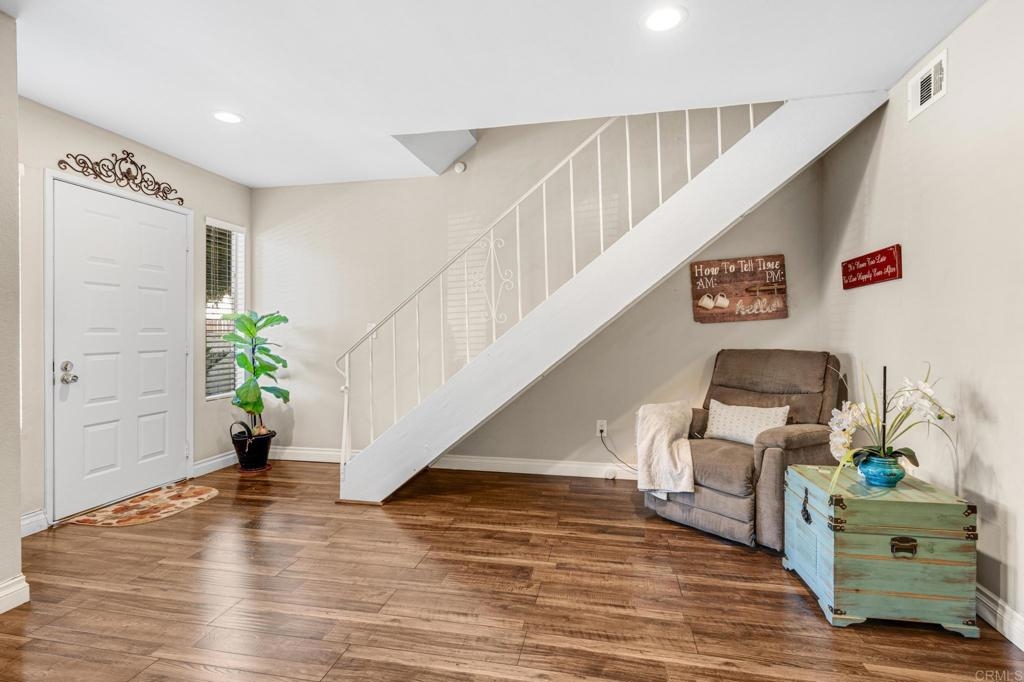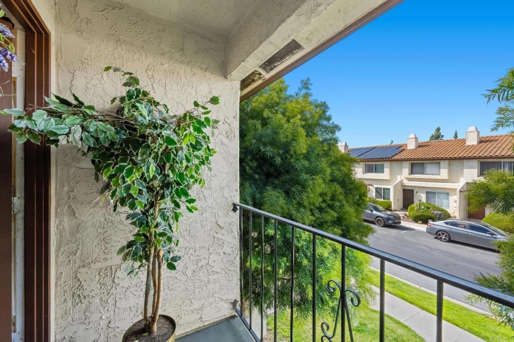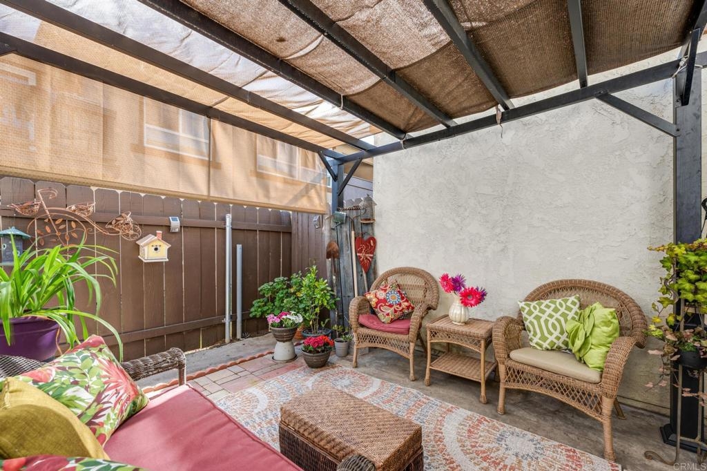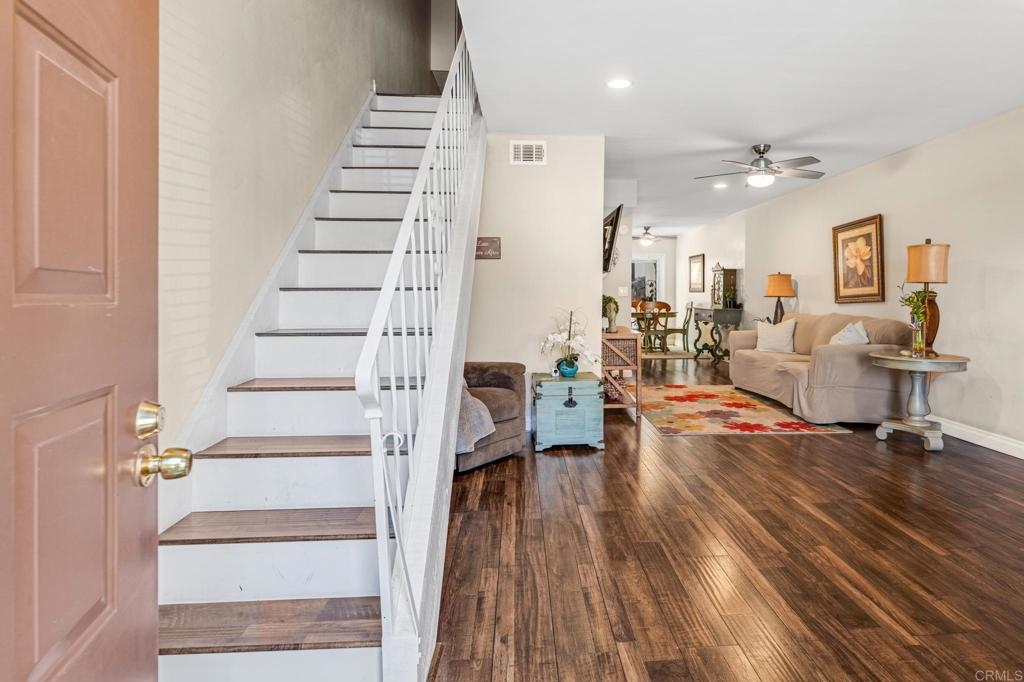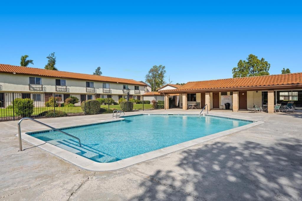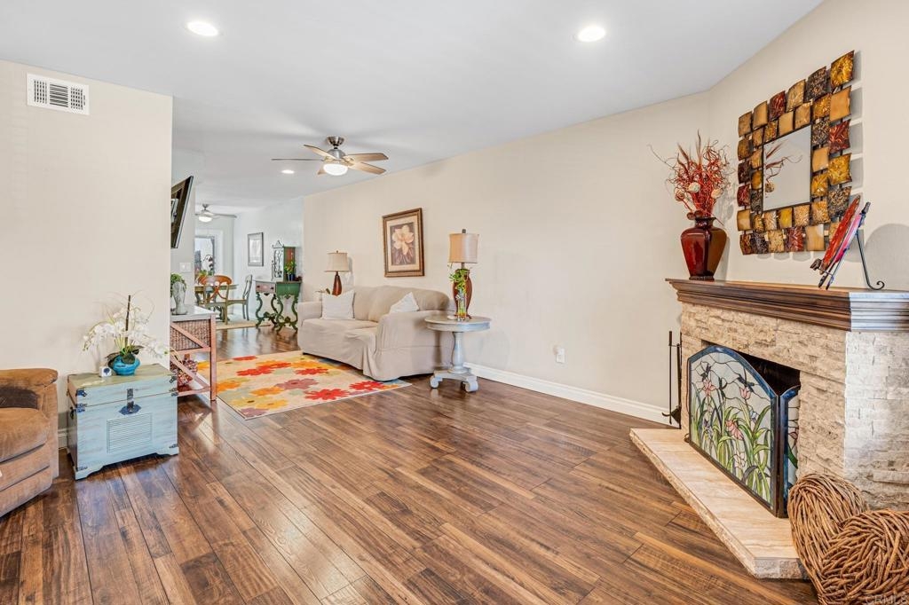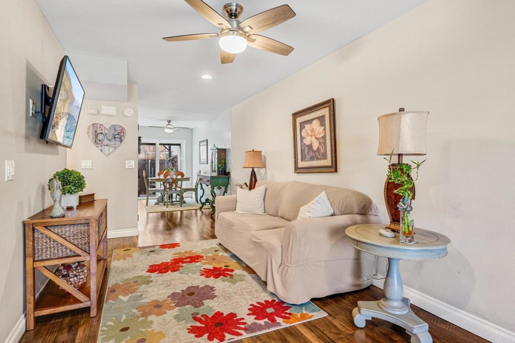 BEAUTIFUL condominium in a quiet gated community! Enjoy privacy in the serene garden patio in this highly desirable unit. This home is light and bright 2 bed/1.5 bath in the popular Villa Espanas community. The spacious home is upgraded with hardwood flooring, a gorgeous stone fireplace, and a remodeled bathroom! The large eat-in kitchen features white cabinetry, granite countertops, stainless steel appliances, and a custom pantry. The dining area has convenient sliding doors leading to the private patio, perfect for entertaining. Both bedrooms are upstairs and share the remodeled bathroom with double vanities and large, custom tiled shower. The home has 2 parking spaces (one covered carport and one space), A/C, and ceiling fans. Villa Espanas is a quiet gated community centrally located close to freeways and shopping and features a large pool/spa community area.