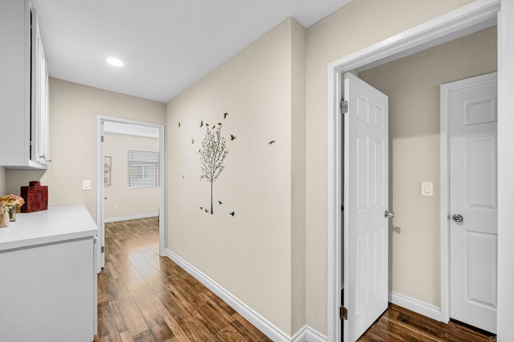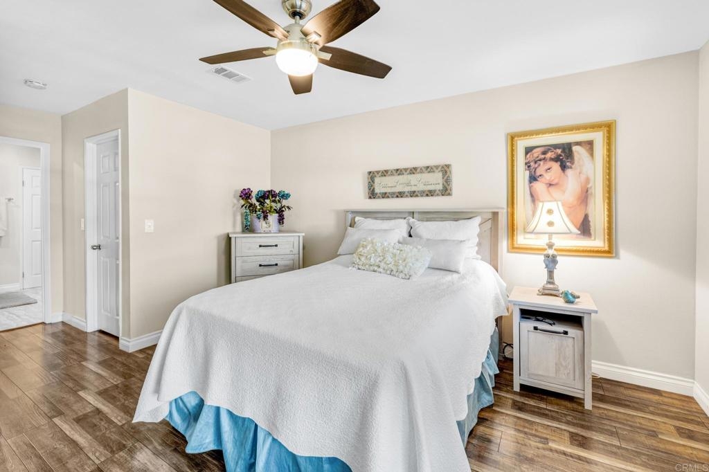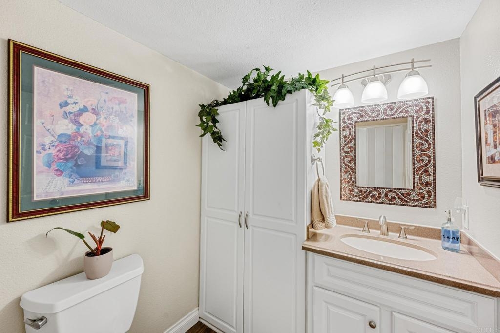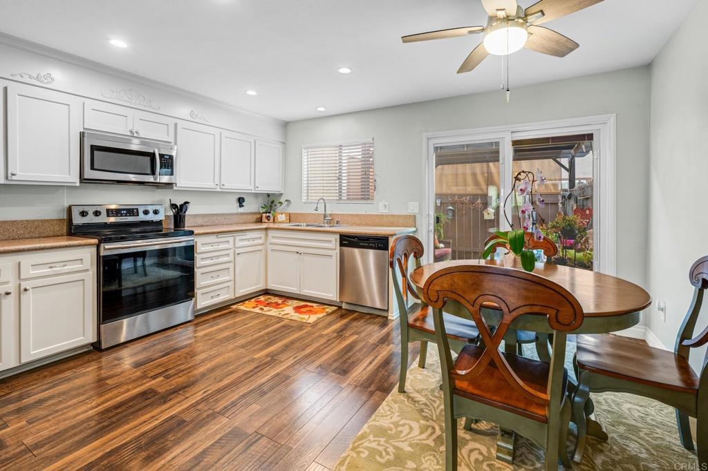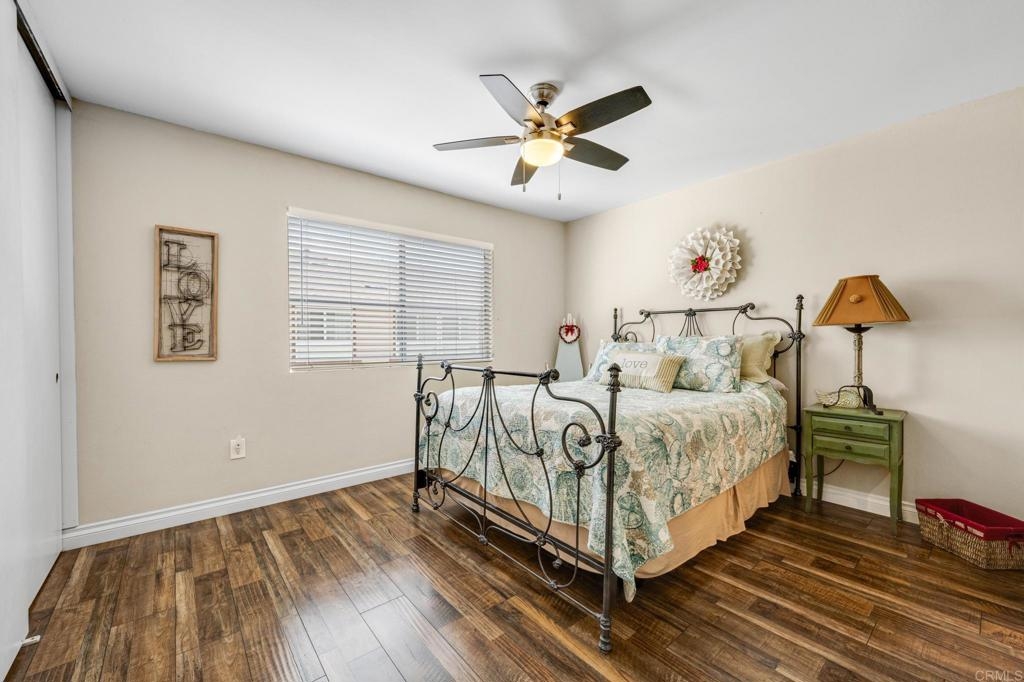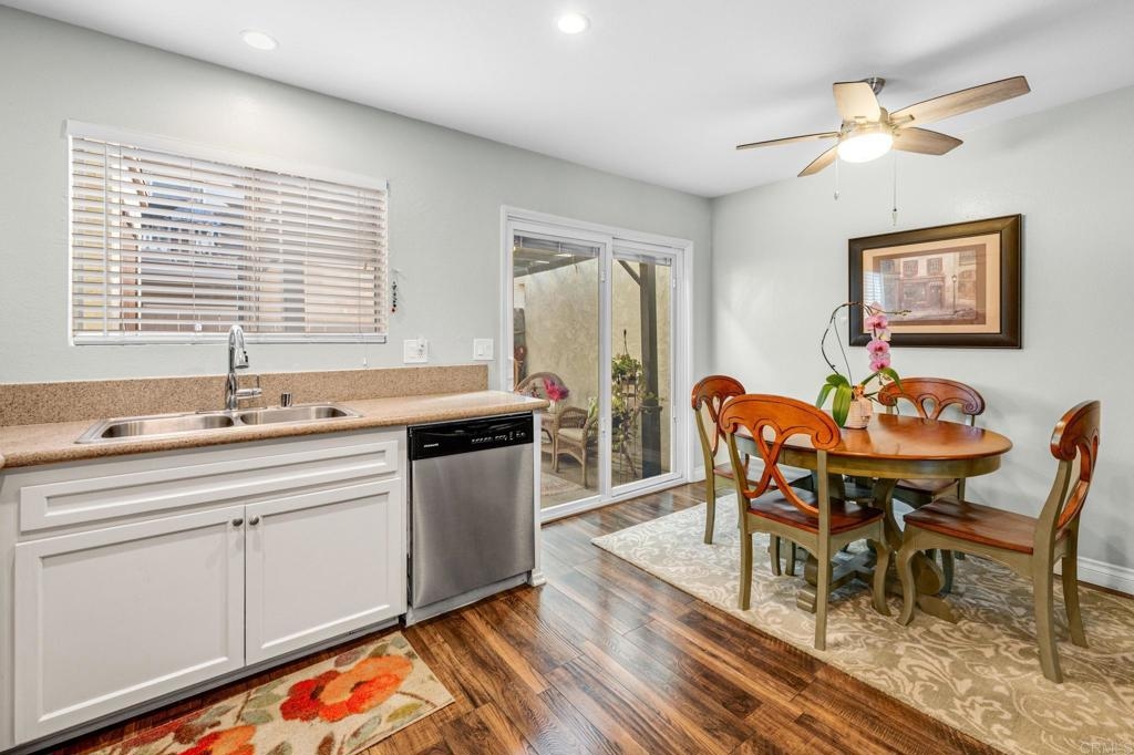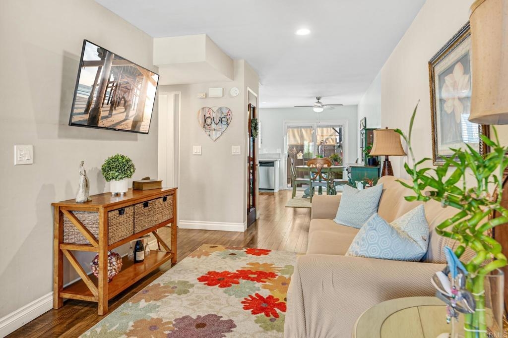 BEAUTIFUL condominium in a quiet gated community! Enjoy privacy in the serene garden patio in this highly desirable unit. This home is light and bright 2 bed/1.5 bath in the popular Villa Espanas community. The spacious home is upgraded with hardwood flooring, a gorgeous stone fireplace, and a remodeled bathroom! The large eat-in kitchen features white cabinetry, granite countertops, stainless steel appliances, and a custom pantry. The dining area has convenient sliding doors leading to the private patio, perfect for entertaining. Both bedrooms are upstairs and share the remodeled bathroom with double vanities and large, custom tiled shower. The home has 2 parking spaces (one covered carport and one space), A/C, and ceiling fans. Villa Espanas is a quiet gated community centrally located close to freeways and shopping and features a large pool/spa community area.