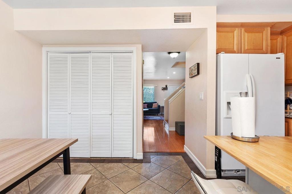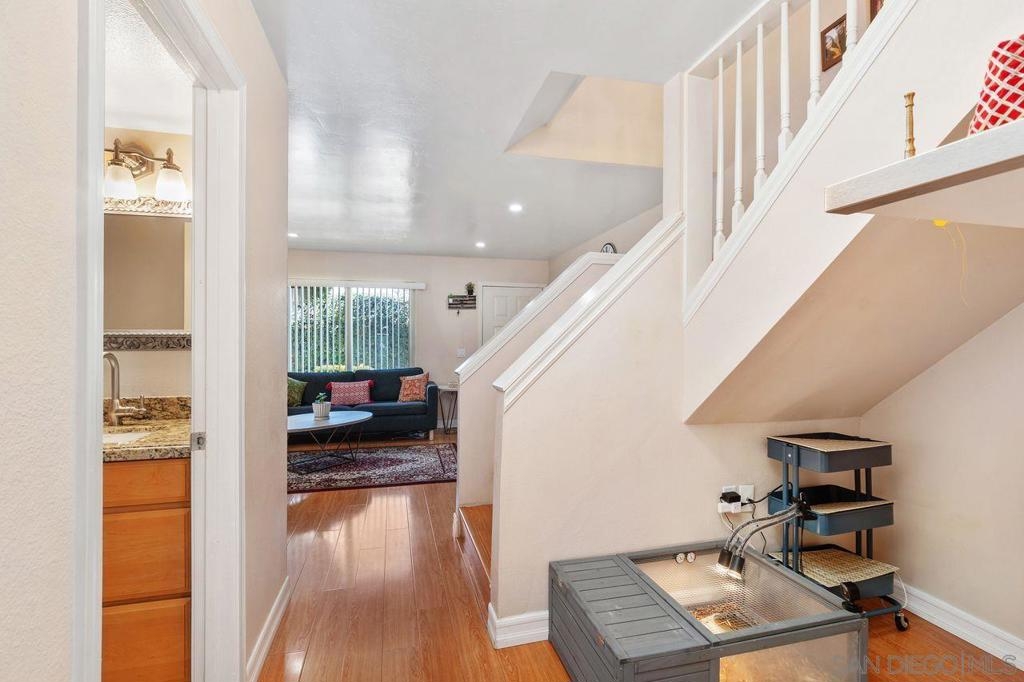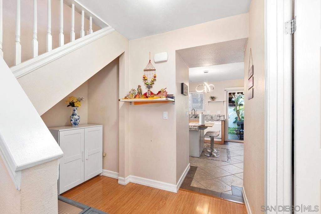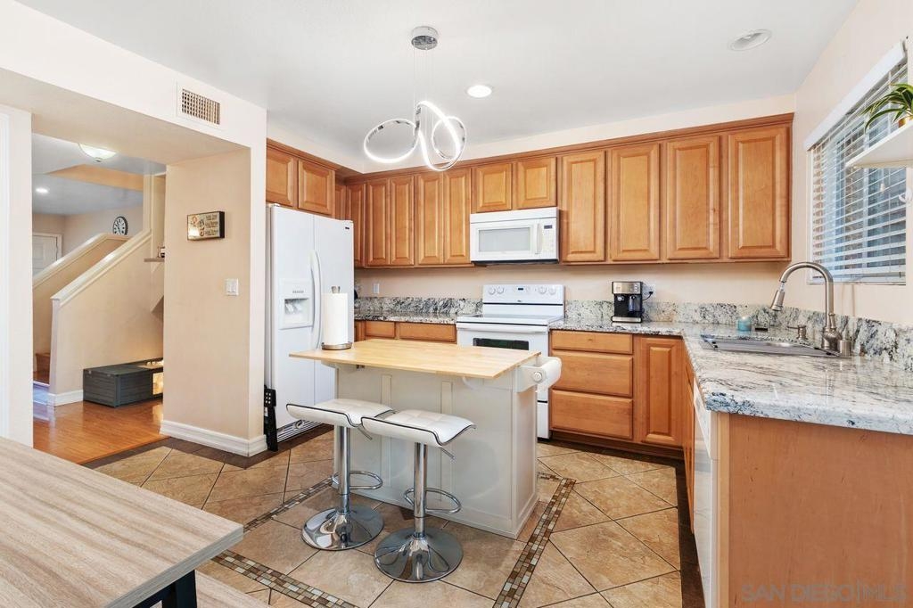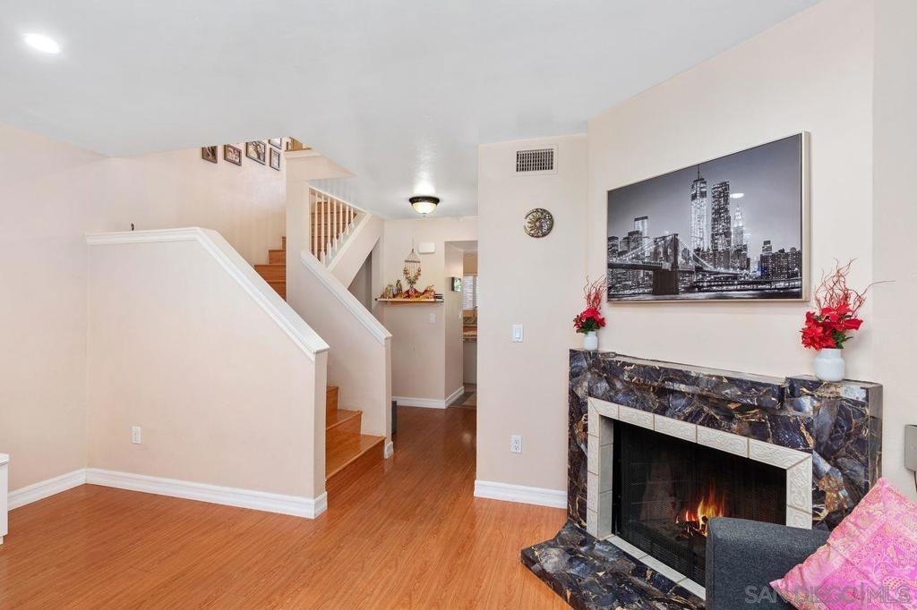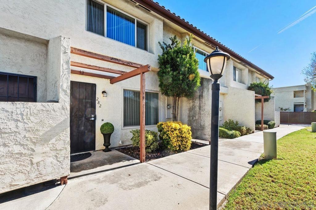 Discover this updated 2 bedroom, 1.5 bathroom townhome in the peaceful gated community of Villa Espanas. The spacious layout features upstairs bedrooms with ample closet space and a convenient half bath downstairs. The living room, complete with a cozy fireplace, offers a warm and welcoming atmosphere. Enjoy modern touches with upgraded bathrooms, neutral paint, trim, and durable laminate flooring. The kitchen is well-equipped for your culinary needs. Experience outdoor living on the private, fenced patio – perfect for entertaining. Convenience is key with in-unit laundry, central AC, and two assigned carport spaces. The community boasts a sparkling pool and secure gated access. Located just minutes from shopping, schools, parks, and major highways, this townhome combines comfort with accessibility. Ideal for anyone seeking a low-maintenance, stylish home. Don't miss out on this Escondido gem Welcome to your new home in the serene, gated community of Villa Espanas in South Escondido. This beautifully updated two-story townhome offers a perfect blend of modern amenities and comfortable living, designed to cater to a lifestyle of convenience and elegance. As you step inside, you are greeted by a spacious 2 bedroom, 1.5 bathroom layout. Each bedroom, located upstairs, is a haven of tranquility with generous closet space and easy access to the full bathroom. The additional half bath on the main level adds convenience for both residents and guests. The welcoming living room, graced with a cozy fireplace, is ideal for relaxation and social gatherings, bathed in natural light that enhances the inviting atmosphere. The townhome features stylish designer finishes throughout. Neutral paint and trim accentuate the modern aesthetic, complemented by durable laminate flooring in the main living areas. The upgraded bathrooms showcase modern fixtures and finishes, adding to the home’s contemporary appeal. The well-appointed kitchen, boasting ample counter space and storage, is perfect for preparing your favorite meals. Extend your living space outdoors with the fully fenced back patio, ideal for al fresco dining and entertaining. For your convenience, the townhome includes in-unit laundry with a large laundry closet, complete with washer/dryer hook-ups. Stay comfortable year-round with central air conditioning and dual-pane windows, ensuring a pleasant indoor environment. Parking is made easy with two assigned carport spaces, eliminating any parking hassles. Residents can also enjoy the community's sparkling pool and secure gated access for added peace of mind. Situated minutes from shopping centers, schools, parks, and major highways (Highway 78 and Interstate 15), this townhome offers unparalleled access to the best of Escondido. Whether you're a first-time homebuyer, a downsizer, or seeking a stylish, low-maintenance home, this townhome in Villas Espana is an opportunity not to be missed. Embrace the lifestyle you've been dreaming of in a community that provides both security and convenience.