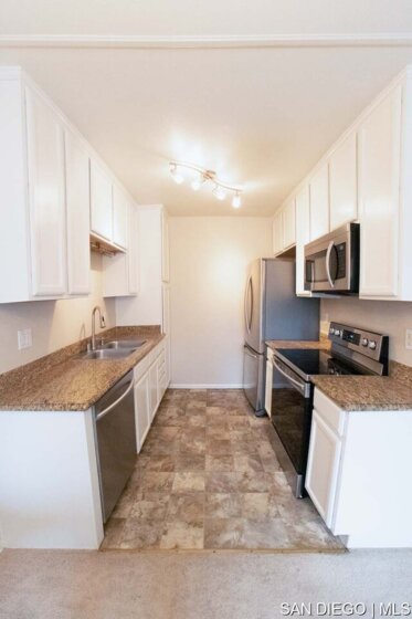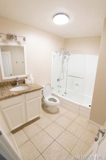 Bright and beautiful upper unit in the gated Via La Paz community. 2 bed/1.5 bath floor plan with upgraded appliance, dual pane windows, and primary closet. Pool, spa, BBQ area, club room, fenced in dog park, and lovely landscaping. Laundry on site. Close to 15 and 78 freeways. Detached garage and carport parking!