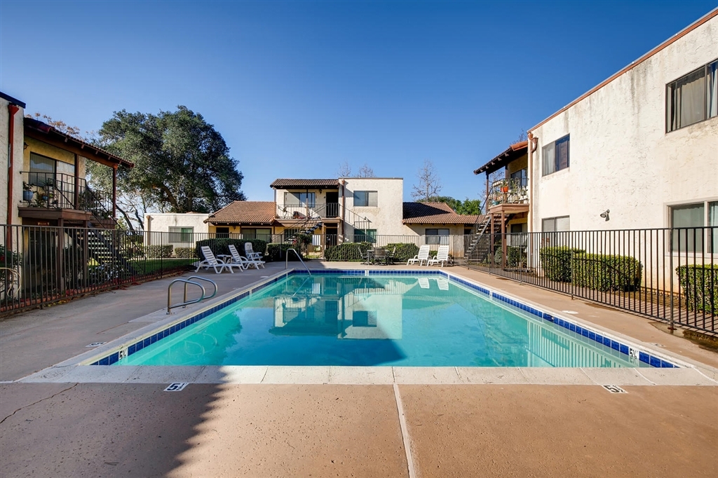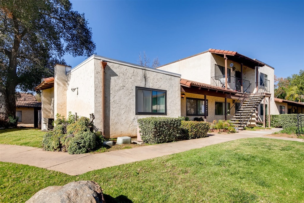 Single story, no stairs, end unit condo located in a small, quiet complex in Old Escondido. The living room has laminate floors, clean interior paint and view of the sparkling pool. Open concept and the kitchen shows beautifully with white cabinets. Bedrooms have neutral carpet. The home has two full bathrooms. Private covered patio area, two parking spaces; one covered and has storage space. Come see this home today! Great first time or investor property. End unit.. Neighborhoods: Esccondido Complex Features: ,, Other Fees: 0 Sewer: Sewer Connected, Public Sewer Topography: LL Guest House Est. SQFT: 0