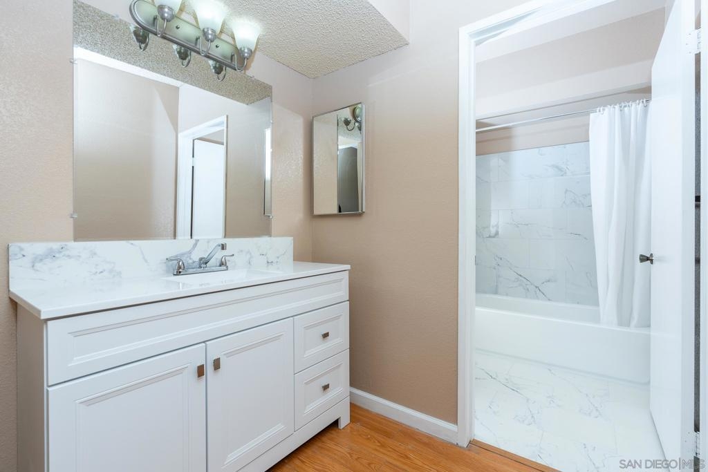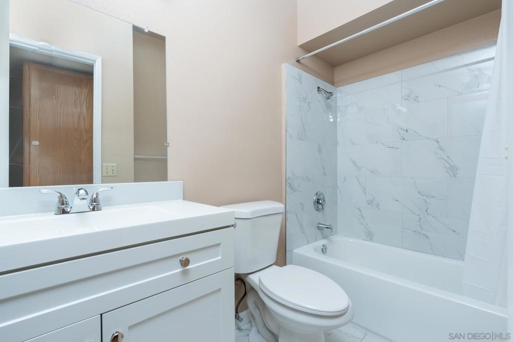 Spacious 2B 2B condo in the heart of Escondido Village. Gated community. Situated on the third floor with elevator and stair access. Open floor plan. New paint and brand-new remodeled bathrooms. Open and bright kitchen with maple wood cabinets and fixtures. Fireplace in the spacious living room area that opens to an exterior balcony. The balcony has an outdoor closet area that has hookups available for a stackable washer and dryer combo. The complex amenities include laundry room, pool, spa, and community area with BBQ. Two assigned parking spots. One carport and one uncovered.