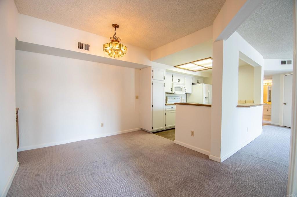 Beautiful VACANT condominium available in this amazing community in the heart of escondido. This third floor unit home is freshly painted, new tile floor in both bathrooms, brand new carpet. In-unit location for washer and dryer and much more. This gated community unit offers a spacious floor plan with a great view of the mountains. With a primary bedroom and bath on the opposite side from the second bedroom, you will enjoy plenty of privacy. Primary bedroom offers his and hers closet.The large kitchen area features a breakfast bar and opens up to the living room and dinning room areas. Two assigned parking spaces, R2. plus guests parking space. Easy to Show. Unit is Vacant!