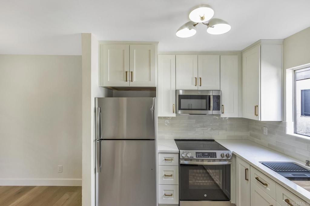 Stunning Fully Upgraded Condo in Escondido! Welcome to this beautifully remodeled 2-bedroom, 1-bath upper-level condo in Escondido! With 821 square feet of thoughtfully upgraded living space, this light and bright home offers modern finishes and unparalleled convenience. It has been completely gutted and tastefully remodeled! Vinyl Plank Flooring throughout provides a modern and durable look, and Quartz Countertops and stunning cabinetry in the kitchen and bath complete the look. High-End Appliances – Includes a sleek new refrigerator, oven, microwave, and dishwasher. In-unit washer & Dryer – Rarely found in this community, a stackable unit is conveniently located in the primary bathroom. Private Balcony – Overlooking a serene greenbelt, perfect for relaxing after a long day. Updated Bathroom – Features new cabinetry, countertops, fixtures, and a modern tub/shower. One Designated Parking Spot – Plus ample guest parking. The community offers a Pool and Sport Court for recreation. HOA covers Water, Trash, and Sewer for added peace of mind. On-site Community Laundry (though you’ll have your own in-unit convenience!). Prime location just minutes to both the 78 & 15 freeways for easy commuting. A short drive to the beaches in Oceanside, vibrant shopping, and dining. Close to outdoor adventures like Lake Hodges, Daley Ranch, and the San Diego Zoo Safari Park. This condo blends modern luxury with affordability in a central location. Whether you're a first-time buyer, downsizing, or looking for an investment, this home is a must-see! Schedule your private showing today! Note: Some photos have been virtually staged to showcase the home’s potential.