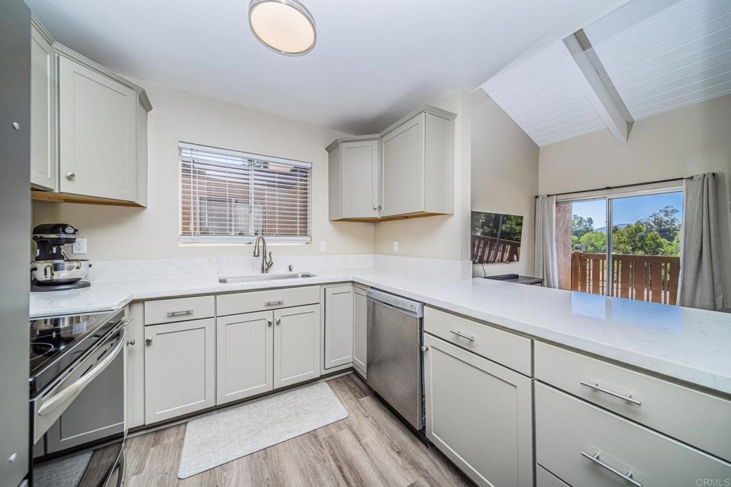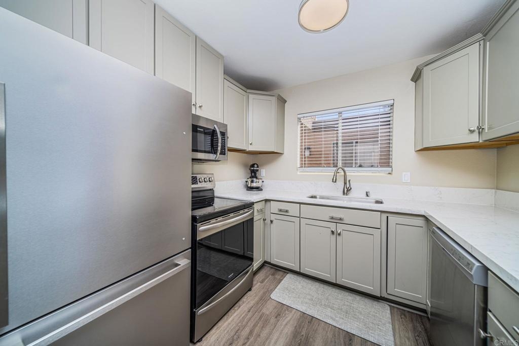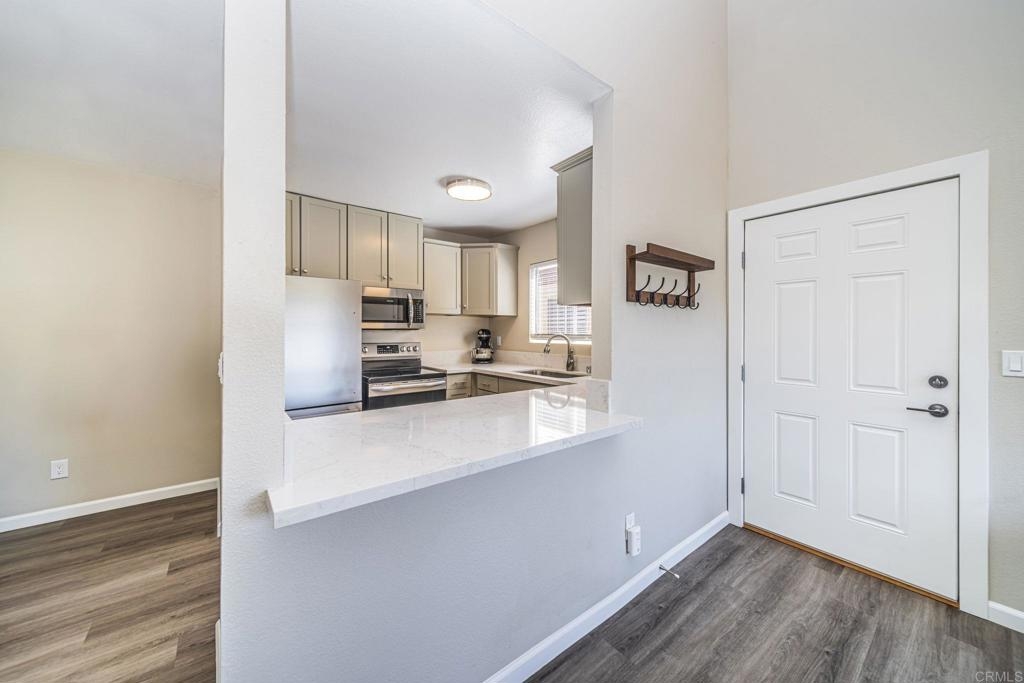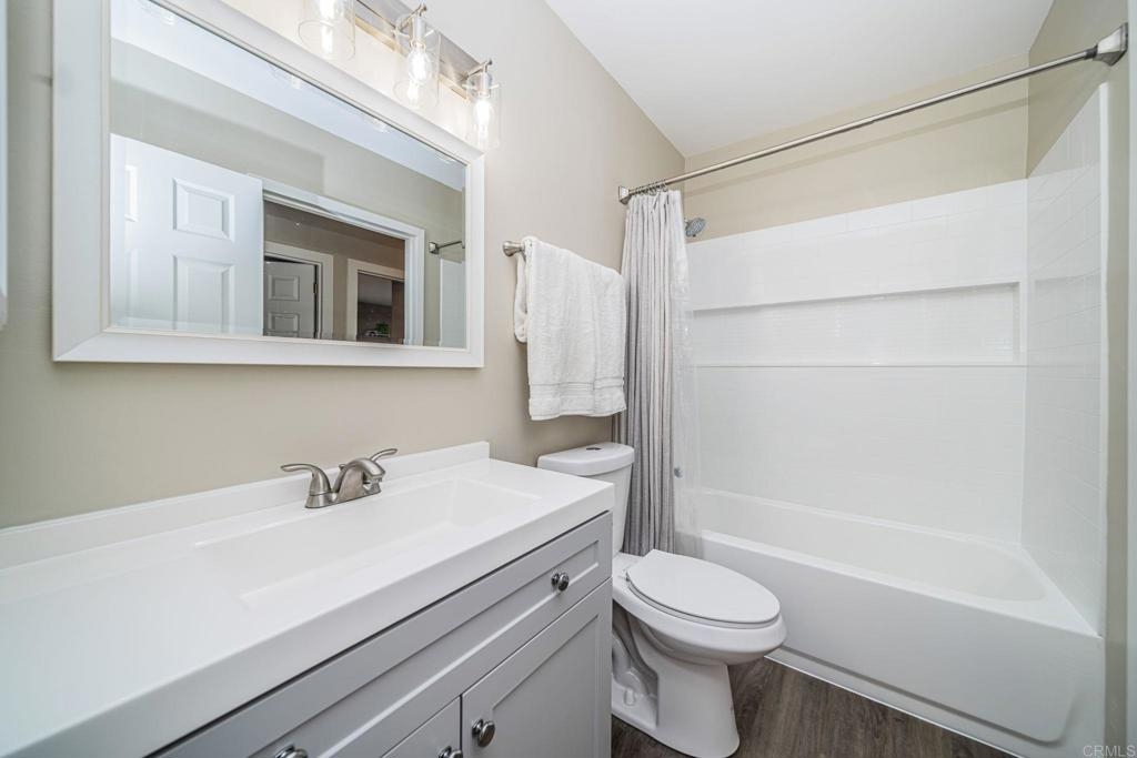 Well-maintained, light & bright upper-level unit with a private balcony. Featuring laminate wood flooring, new light fixtures, & a remodeled kitchen with white granite counters, new cabinetry, & SS appliances. The bathroom has also been updated with new cabinetry, countertops, fixtures, & tub/shower. Community amenities include pool, hot tub, sport court, & laundry room. HOA fees include water, trash and sewer. Designated resident parking beneath the carport, plus additional spaces in the complex for guests. Minutes to both the 78 & 15 freeways. Short drive to the beach in Oceanside, shopping, dining, Lake Hodges recreation area, Daley Ranch, & the Safari Park!