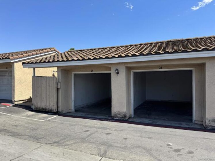 Large 2 bedrooms / 2 bathrooms / 2 car garage / in-unit laundry...Welcome to this beautifully upgraded, high-end condo located in a gated community in the heart of Escondido. This rare, freshly painted downstairs unit features two separate 1-car garages—an exceptional find that offers added convenience or income potential. Each garage can be used personally or rented out separately as storage or small warehouse space to generate extra income. Inside, the home boasts a spacious, open layout with a remodeled kitchen featuring granite countertops, travertine floors, stainless steel appliances, and elegant crown and base molding throughout. The large living room with a cozy fireplace flows into a private patio, perfect for relaxing or entertaining. You’ll also enjoy a huge master suite with ample closet space, two full bathrooms with granite vanity counters, and a private laundry room with washer and dryer included. Central A/C ensures year-round comfort. Just steps from your door, the community offers a pool, spa, and recreation room. With easy access to shopping, dining, and the I-15 freeway, this home combines style, space, and functionality—making it ideal for first-time buyers, downsizers, or investors looking for added value and versatility.