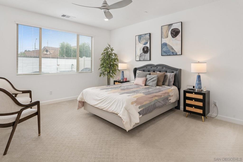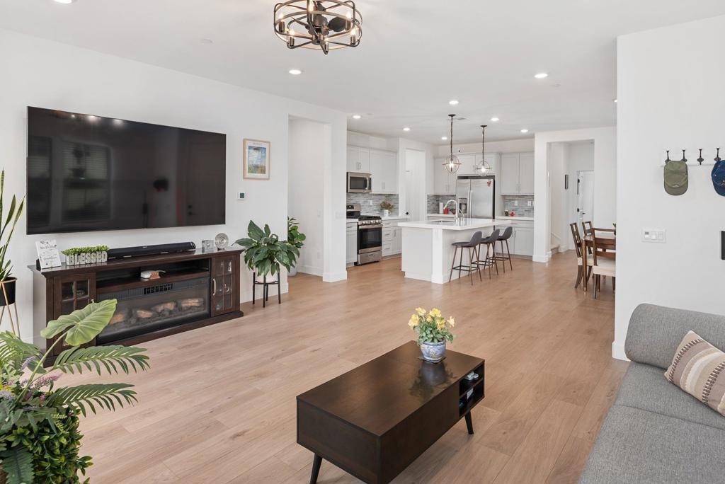 This beautifully private home, built in 2022, is truly turn-key and move-in ready. Impeccably maintained, it blends modern style, comfort, and everyday convenience. The open-concept kitchen boasts a center island and stainless steel appliances, flowing seamlessly into the living area—ideal for gatherings and entertaining. The spacious downstairs primary suite features a walk-in closet and private bath for exceptional comfort. An additional bedroom and full bath on the main level offer extra flexibility for guests or multigenerational living. Additional highlights include paid solar, a tankless water heater, recessed lighting, ceiling fans, and an EV charging station in the attached two-car garage. Located in the highly desirable Canopy Grove community, residents enjoy resort-style amenities such as a sparkling pool, relaxing spas, fitness center, sports and pickleball courts, scenic walking trails, and a vibrant recreation center.