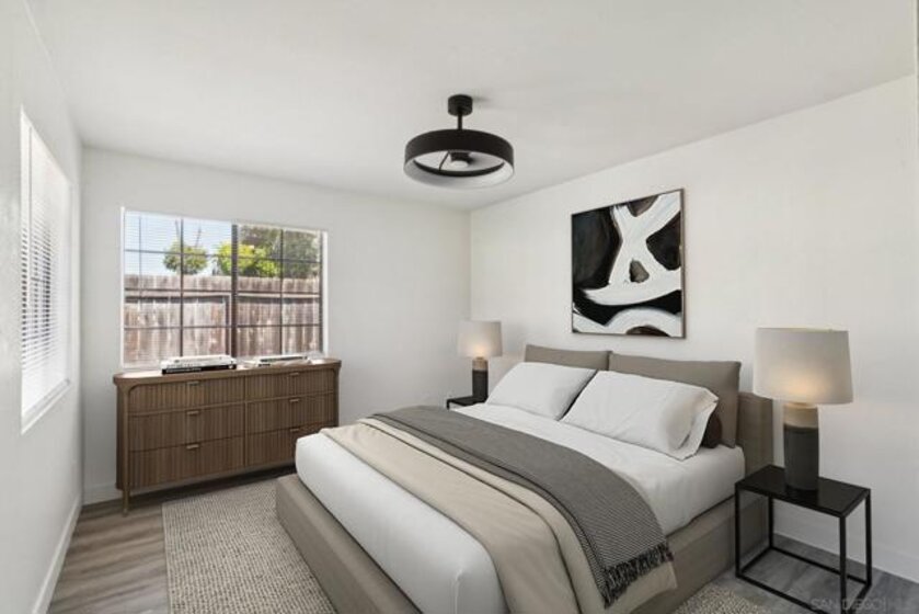 This beautifully updated unit showcases a range of recent improvements, including fresh paint, new flooring, and updated baseboards throughout. The bathrooms have been completely remodeled, while the upgraded kitchen features quartz countertops, new appliances, and a stainless steel sink—perfect for both everyday living and entertaining. Step outside to a spacious backyard with new wood patio flooring, offering an ideal space to relax or host guests. The home includes two assigned parking spaces and is located within a gated community for added privacy and peace of mind. All bedrooms are thoughtfully situated upstairs, including a spacious primary suite with ample closet space. Additional highlights include in-unit laundry and access to a community swimming pool. Conveniently located near shopping, dining, parks, and schools, with easy access to Interstate 15 and Highway 78, this move-in-ready home offers both comfort and convenience.
