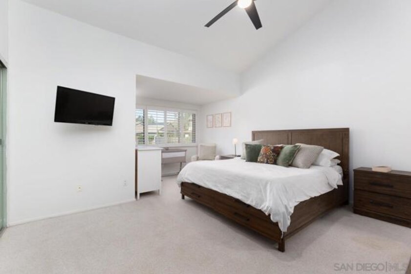 Rarely available residence in Country Club Terrace, an exclusive boutique enclave where fee simple ownership includes the land itself & living feels quietly refined. Live expansively in this sunlit, generously scaled home offering vaulted ceilings, scenic views, serene & manicured grounds, short distance to dog parks & playground. This move-in ready residence offers 2 bedrooms, 2.5 bathrooms & 2-car attached garage. The inviting living room is highlighted by a cozy fireplace, custom built-in entertainment center, mirrored accent wall & large sliding dual pane door that fills the space with natural light. The dining area is ideal for entertaining, complete with new dry bar, butcher block counter, storage cabinetry & wine refrigerator. The updated kitchen with breakfast bar, all new stainless steel appliances & new faucet, white washed cabinetry & excellent storage throughout. A guest powder room & oversized coat closet/pantry complete the main level. Upgrades include dual pane windows with custom wood shutters throughout, three ceiling fans, new electrical panel & new water heater, custom built-ins in every closet, stair railings reconfigured to current code standards & linen closet in upstairs hallway. The expansive primary suite features generous space for home office or nursery, updated en-suite bath, walk-in shower/seat & abundant cabinetry. The second bedroom has its own private bathroom. Amazing outdoor views from your private covered patio with new beautiful concrete flooring & new elegant wrought iron fence with gate. Perfect blend of elegance, comfort & location!!