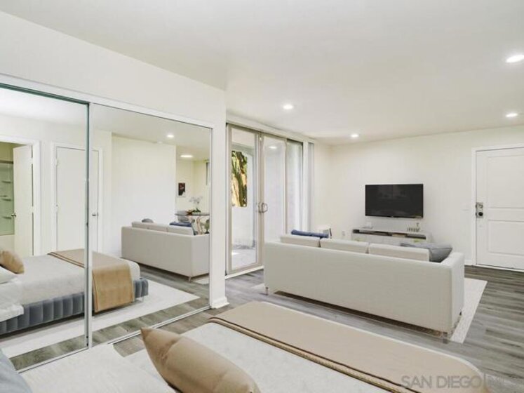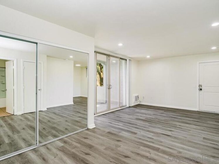 Sommerset Villas! Adorable, ground floor studio unit that is move-in ready. (Some photos are virtually staged.) This condo has an extra-large covered patio with a parklike view. Inside there are stainless steel appliances, an inside washer/dryer unit, recessed lighting, retrofitted window and slider, luxury vinyl plank flooring plus tile floors in the kitchen and bath. It is perfectly located within the community near the tennis court, pool, spa, playground, dog park, and the private wooded, nature preserve! The gated parking lot includes 1 assigned parking space. Sommerset Villas is conveniently close to nearby Freeways 15 & 78, shopping, restaurants, and schools.