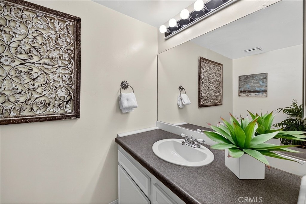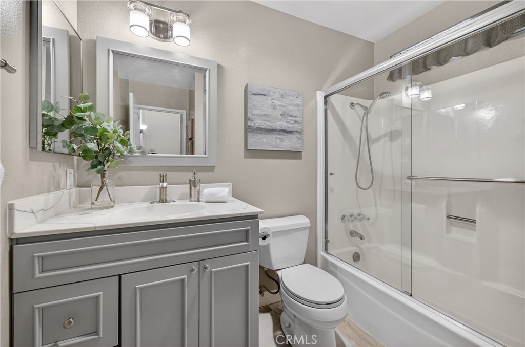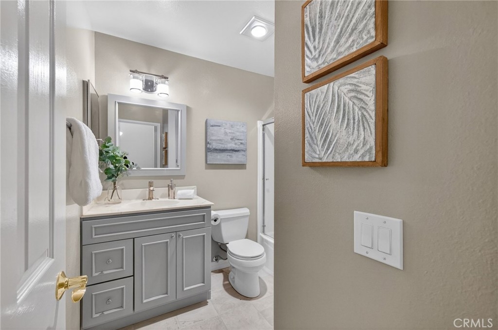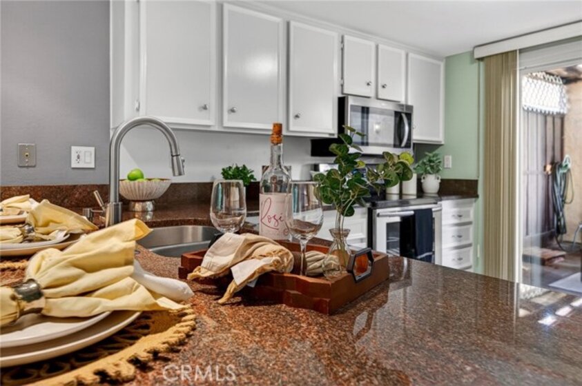 Located in the quiet Skylark Terrace community, this 1,184-square-foot townhome has been extensively updated to offer a modern, open-concept living experience. The main level features brand-new tile flooring and a remodeled kitchen with granite countertops that flows seamlessly into the dining and living areas. The living room is anchored by a refreshed tile fireplace and leads to a private outdoor retreat featuring a rock pebble patio, a permanent patio cover with an integrated fan, and new front and rear gutters. Security and efficiency are prioritized throughout the home with a new front door, vinyl double-pane windows, and security screen doors on both the front and rear entrances. The upper level consists of two spacious bedrooms and two full bathrooms, both of which feature brand-new vanities. This layout provides a clear separation between the social downstairs and the private living quarters. Residents of Skylark Terrace benefit from low HOA fees that cover essential utilities like water and trash, while providing access to premium amenities including a community pool, spa, and clubhouse. The property’s location is exceptional for both commuters and locals, situated in North Escondido with immediate access to the I-15 and Highway 78. It is positioned within walking distance of Escondido High School and is just minutes away from the vibrant dining, shopping, and entertainment of Historic Downtown Escondido. This home offers a rare combination of structural upgrades, modern interior finishes, and a highly accessible location. This home has been lovingly owned and occupied by it's owner for over 27 years. Available now, but not for long...schedule your showing today.