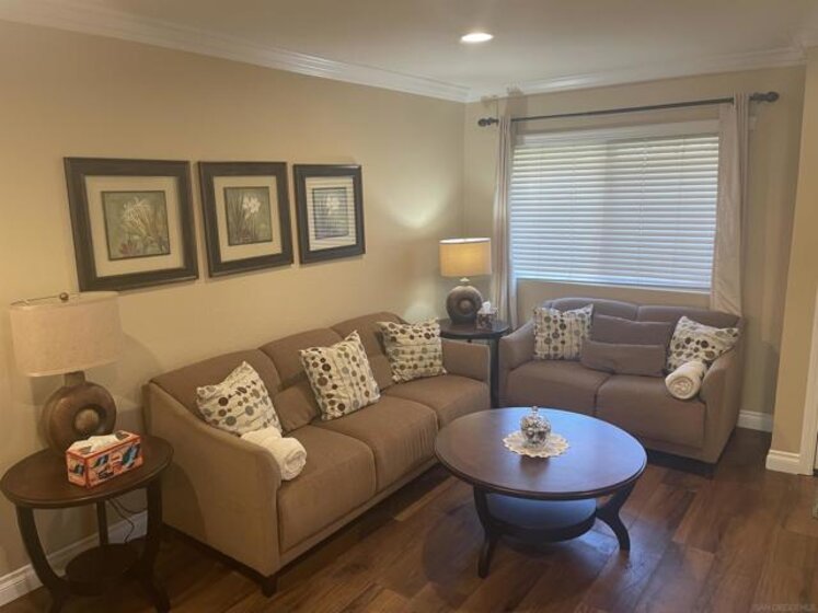 Discover this charming single-story unit, offering the perfect blend of convenience and privacy. Enjoy your own private backyard with direct access to a dedicated garage. Inside, you'll find elegant granite countertops throughout the kitchen and matching granite in the bathrooms, complemented by sleek stainless steel appliances. The flooring features durable tile in the kitchen and bathrooms with professionally installed luxurious vinyl plank throughout the rest of the home. Additional highlights include neutral color palette, mirrored closet doors, crown molding, custom paint, and stylish 2-panel interior doors. All appliances are included, and the unit boasts brand-new paint and flooring for a fresh, move-in-ready feel! Heat Pump replaced last year. $15,000, New flooring and paint $11,000.