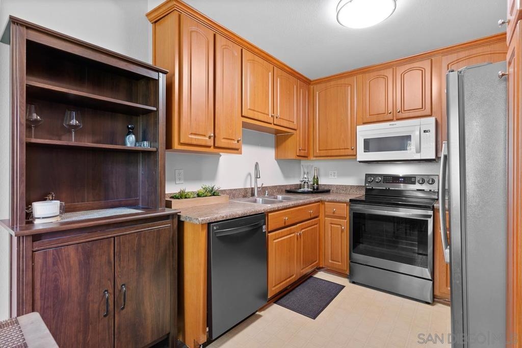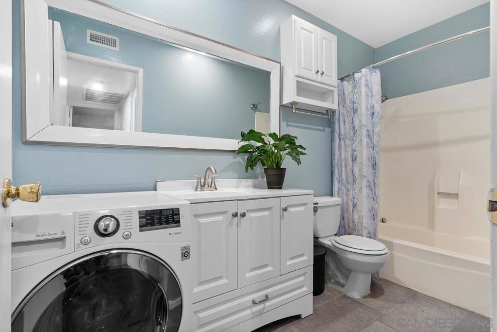 This VA approved Top Floor spacious condo with high vaulted ceilings has it all! The large bedroom features a big walk in closet. Plenty of additional storage options include storage cabinets in the halls and storage room of your private balcony. The updated kitchen features newer cabinets, a side by side refrigerator as well as an LG Dishwasher & freestanding Range. The updated bathroom features a newer vanity, extra large mirror, tile floors and your own private washer/dryer combo! The unit is located yards away from both large community pools and clubhouses as well as being blocks away from stores, dining, parks, and schools. Equipment: Dryer, Range/Oven, Washer Sewer: Sewer Connected Topography: LL